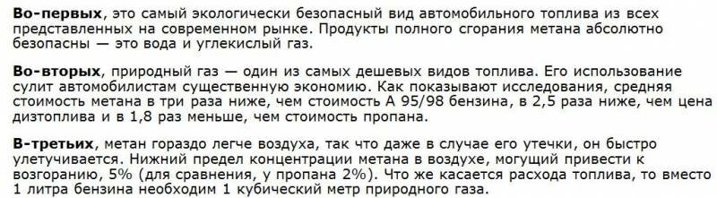 Преимущества метана