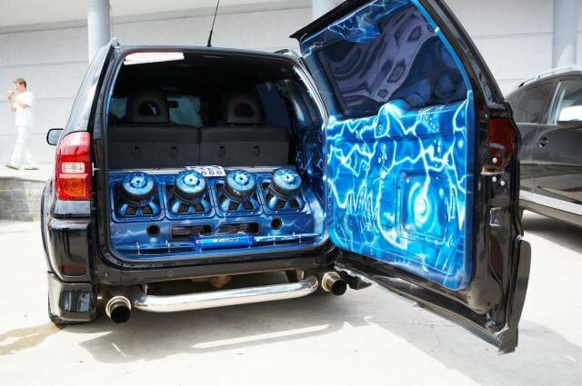 Можно встретить в машинах фронтальный бас – это когда низкочастотные динамики устанавливаются впереди, а ни как у всех сзади. Такой аудиотюнинг обоснован отнюдь не желанием резко отличаться оригинальностью, а необходимостью построения звуковой сцены, которая определяется в звучании инструментальной музыки. В остальных случаях установка НЧ динамика впереди неоправданная, и часто для улучшения разделения каналов заменяется монтажом мидбасов.