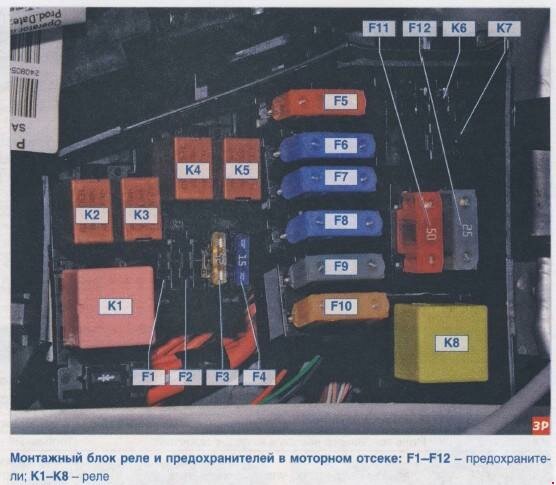 Большой сборник электросхем монтажных блоков предохранителей и реле для автомобилей Renault. Указано местоположение, ток каждой плавкой вставки и защищаемые ей цепи. Большинство предохранителей установлены в отдельных монтажных блоках, которые находятся в салоне автомобиля и в моторном отсеке. Как правило, на внутренней стороне крышки блока нанесена схема расположения реле и предохранителей, а также находятся запасные предохранители различных номиналов и пластмассовый пинцет для извлечения их из монтажного блока. Напоминаем: прежде чем заменить сгоревший предохранитель, выясните причину его перегорания и устраните ее. Если не работает управляемая реле цепь или система, и предполагается неисправность реле, включите систему. Если реле функционирует, при его включении должен быть слышен щелчок. В этом случае неисправны компоненты или электропроводка системы. Если не слышно, что реле включается, то к реле не поступает питающее напряжение, напряжение переключения или реле неисправно. Проверка реле сводится к замене на заведомо исправное, но будьте осторожны — некоторые реле могут быть похожи внешне и функционально, а другие выглядят одинаково, но исполняют различные функции. Перед заменой реле выключите зажигание. Продолжение сборника тут.