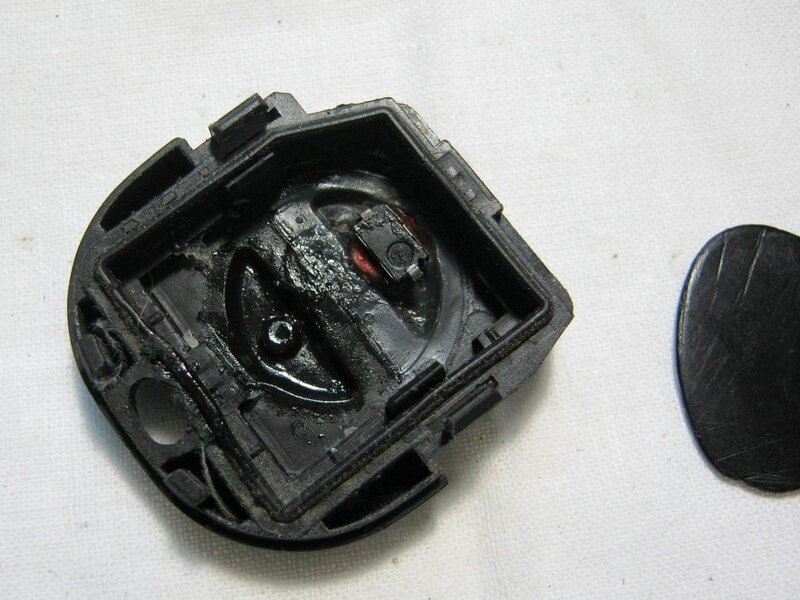 Так вот, корпус ключа – брелка надо раскрывать специальной открывашкой, медиатором, пластиковой картой, в общем любыми мягким пластиком, чтобы не повредить корпус, но никак не твердой здоровенной железной отверткой ковыряя без меры – тут можно поломать и корпус самого ключика и печатную плату, а если совсем повезет - то проткнуть и коротнуть элемент питания который в виде таблетки еще может быть цел и от нагрева расплавить все вокруг и вызвать даже пожар!