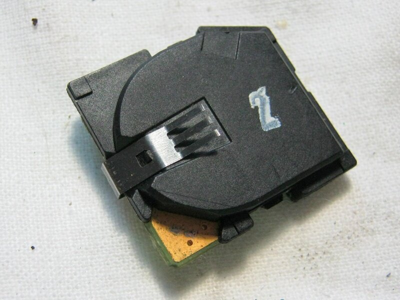 Идем дальше, нужно разобраться в чем дело, когда открыли корпус все внутри скорее всего надо мыть спиртом или обезжиривателем – так как оно или зеленое от накислов или просто в грязи, жире и сажи, также нужно проверить элемент питания – напряжение на элементе должно быть не ниже 2.8 вольт. Все что ниже – замена батарейки. Новый хороший элемент это 3.2-3.4 В при подключенном рабочем брелке, иногда даже все 3.5 В.
