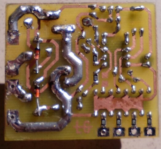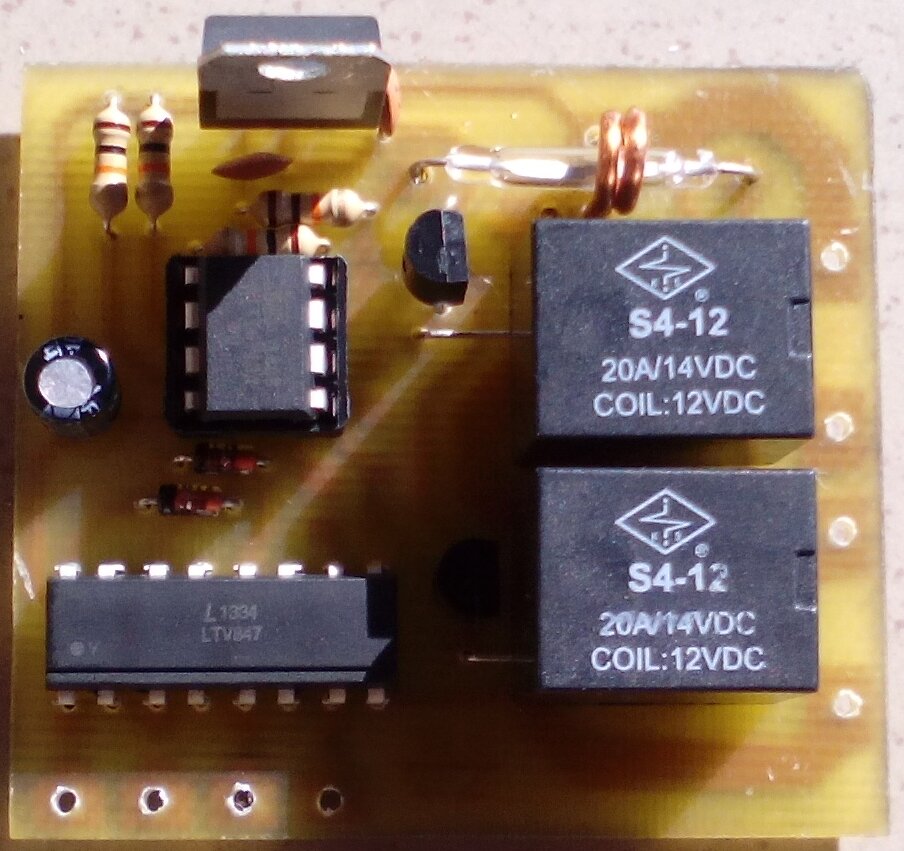Монтаж системы лучше всего начать с перемычек из тонкой проволоки, а затем резисторов SMD. Все пути, через которые будет течь большой ток (толстые дорожки в районе реле) необходимо залудить толстым слоем олова, а лучше проложить по ним медную проволоку.