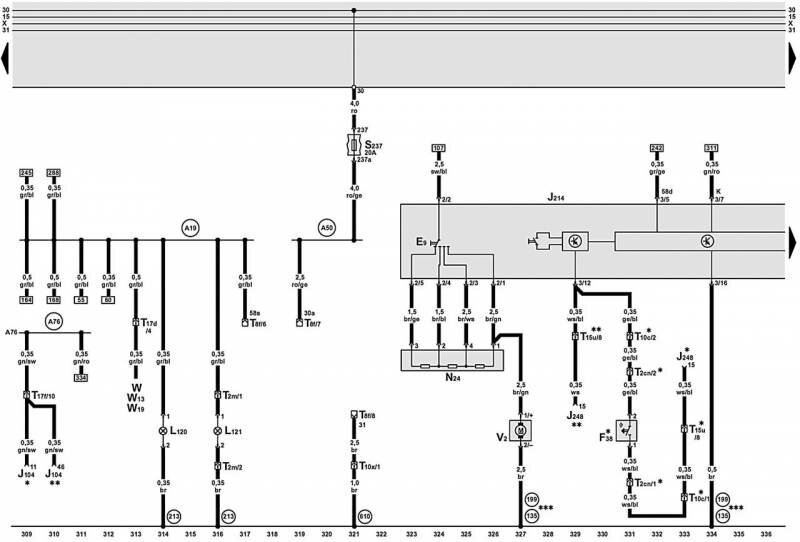 T2ao – 2-контактный электрический разъем, около правой форсунки омывателя