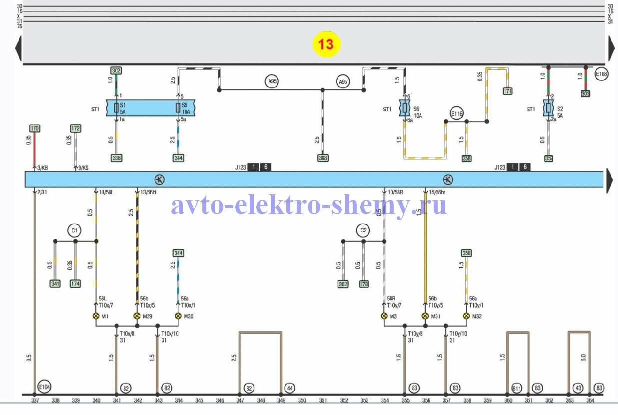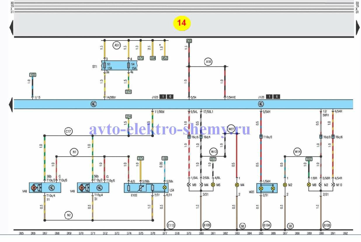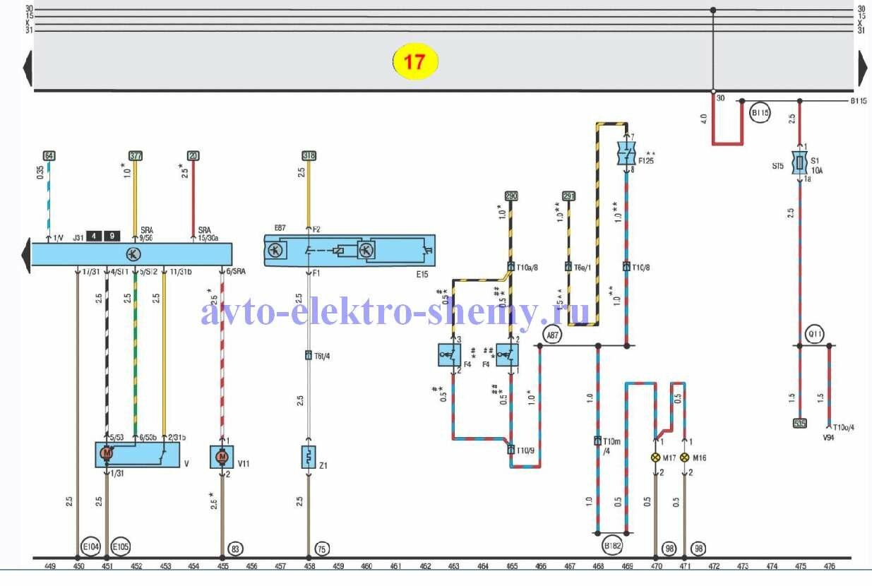Электросхемы для легкового автомобиля Ауди А8. Все схемы цветные и в хорошем качестве. Бесплатно скачать можно кликнув по изображению. Показаны узлы противотуманные фары, выключатель противотуманных фонарей, противотуманные фонари и фонари освещения знаков номера, выключатель сигнала торможення, прикуриватель, плавкие предохранители, реле омывателя и очистителя стекол и выключатель интервалов стеклоочистителя и другие модули. Начало сборника электросхем Audi A8 смотрите тут.