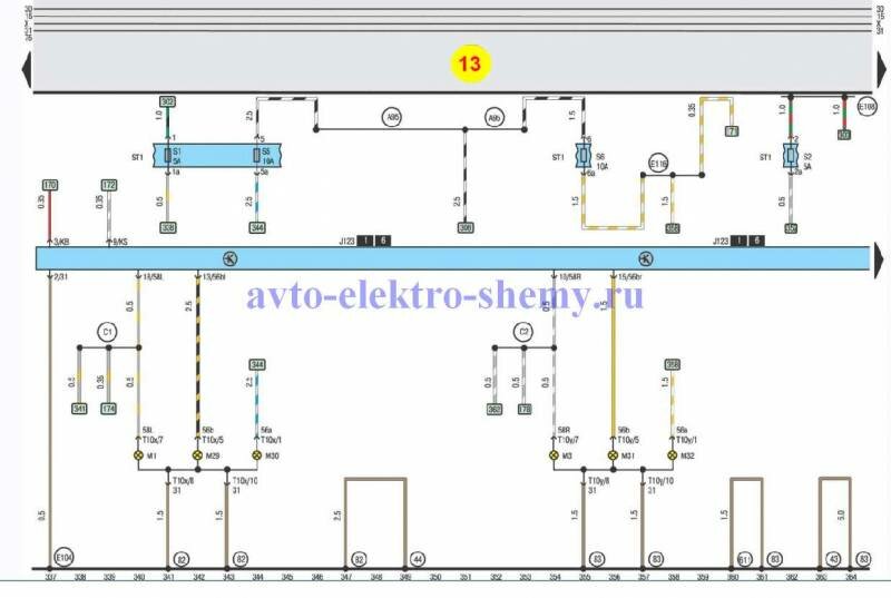 R3 – соединение (дверной выключатель освещения, справа и слева), в электропроводке стеклоподъемник/ система замков с центральным управлением и дверной выключатель освещения