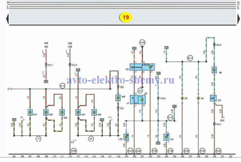 R28 – соединение 2 (дверной выключатель освещения), в задней электропроводке