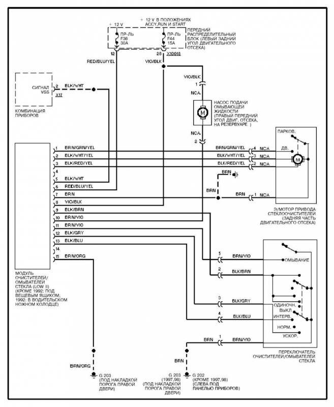 Электросхема омывателей стекла