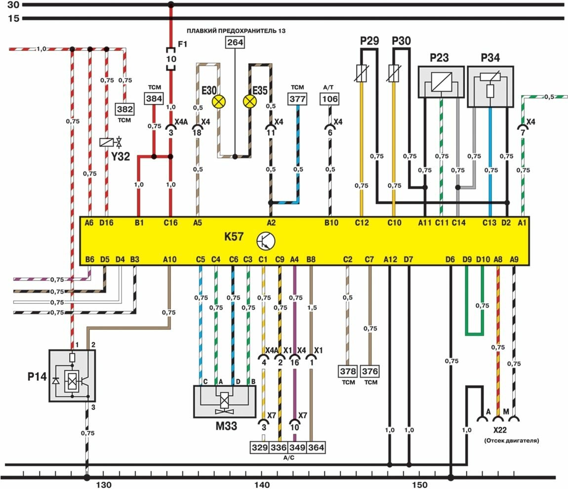 Х6В........Соединитель (3 штифта) для заднего жгута и отвода жгута приборного щитка