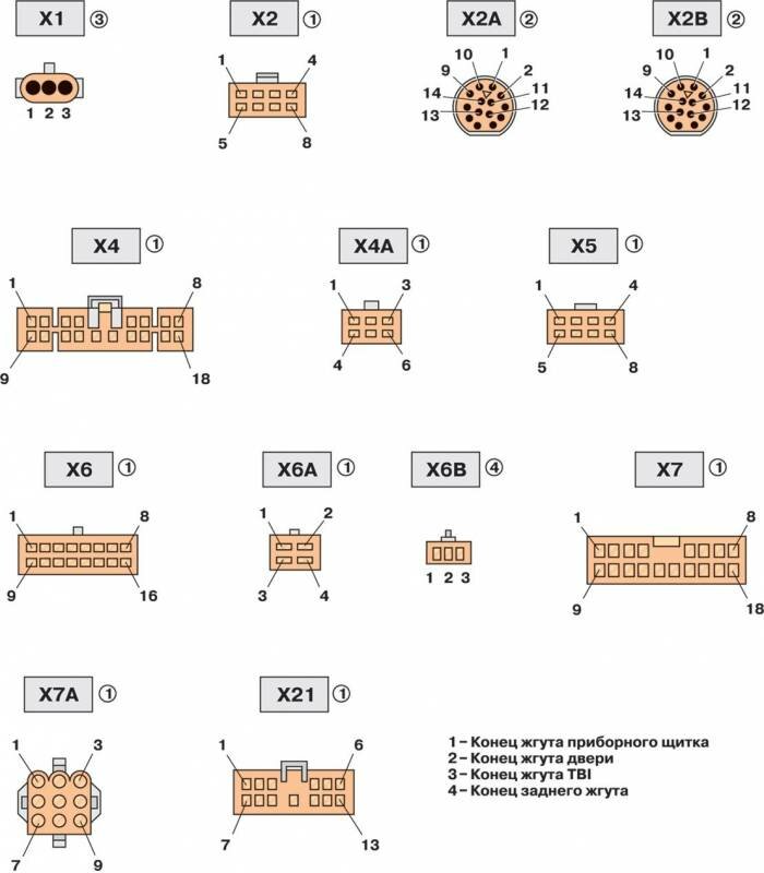 Х4........Соединитель (18 штифтов) для жгутов приборного щитка и TBI
