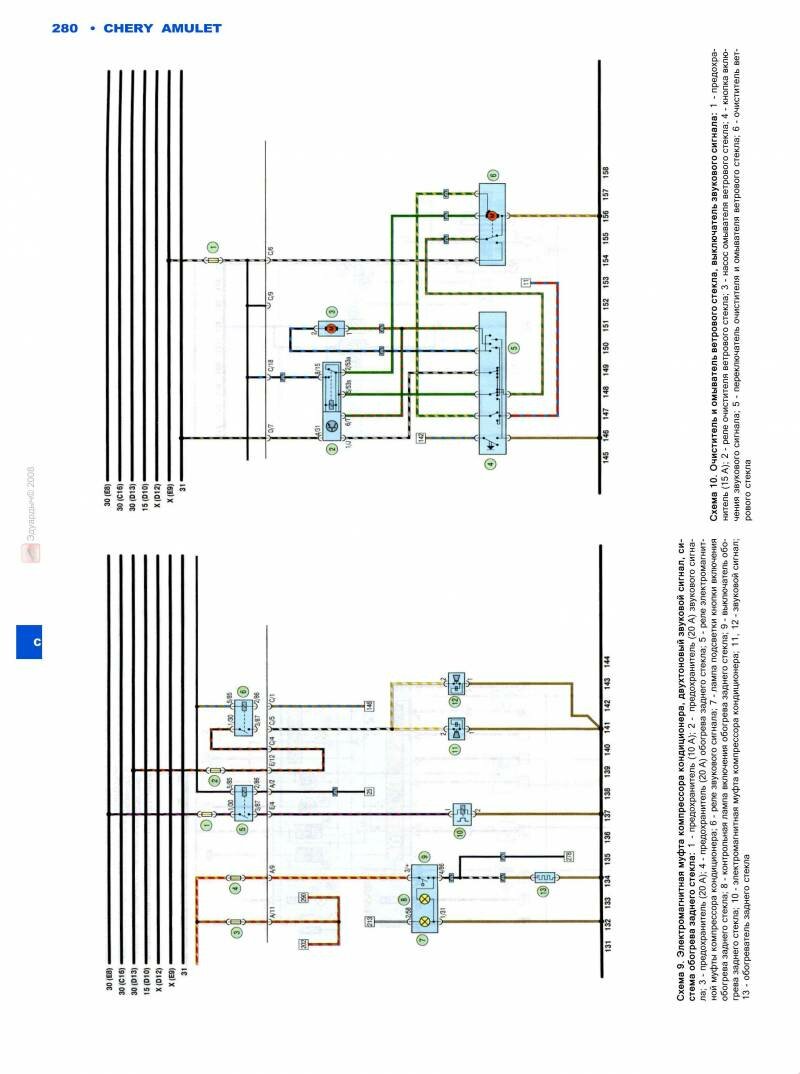 Предлагаем вашему вниманию цветные схемы электрооборудования на Чери Амулет с 2006 г.в. и младше. Экономичный и неприхотливый двигатель объемом 1.6 л. мощностью 94 л.с., работающий на бензине АИ-92 позволит экономить на эксплуатационных расходах. Современная система активной и пассивной безопасности включает в себя 4-х канальный ABS, ремни безопасности для всех пассажиров и 2 фронтальные подушки безопасности.