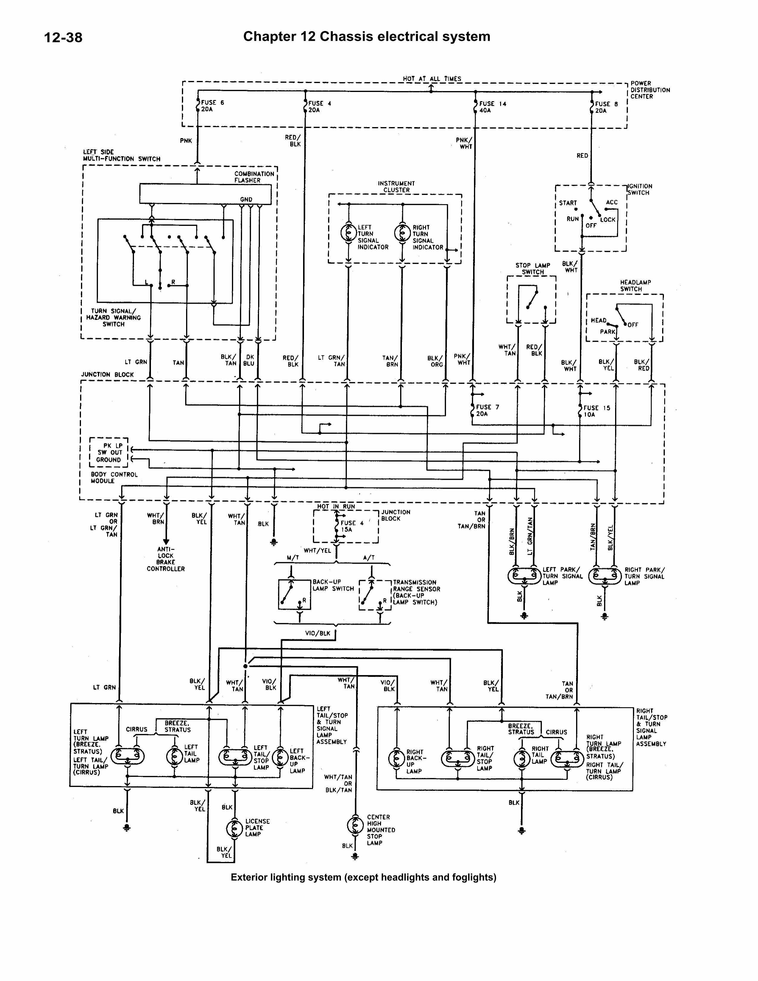 Электрические схемы различных частей электрооборудования автомобиля Додж Стратус. Показана схема соединения жгутов, управления освещением, фарами, стелоподъёмниками и датчиками. Всё, относящееся к электрооборудованию двигателя авто смотрите тут. Для увеличения изображения кликните на схему и увеличьте на весь экран компьютера. Все материалы предоставлены бесплатно и предназначены для самостоятельного ремонта электрооборудования Dodge Stratus.