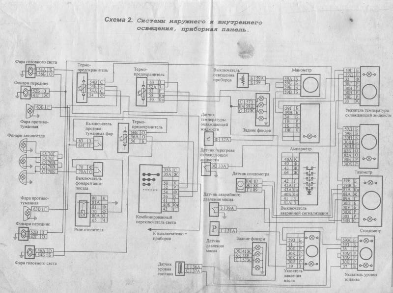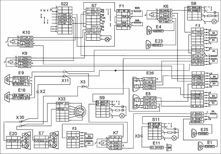 Электросхема наружного и внутреннего освещения КАМАЗ