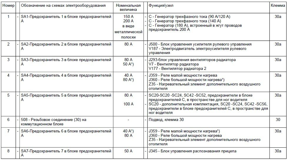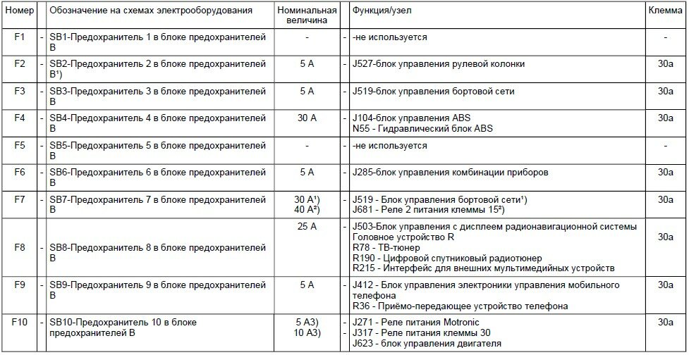 Предохранители в коммутационном блоке, в моторном отсеке слева, с 2007 года