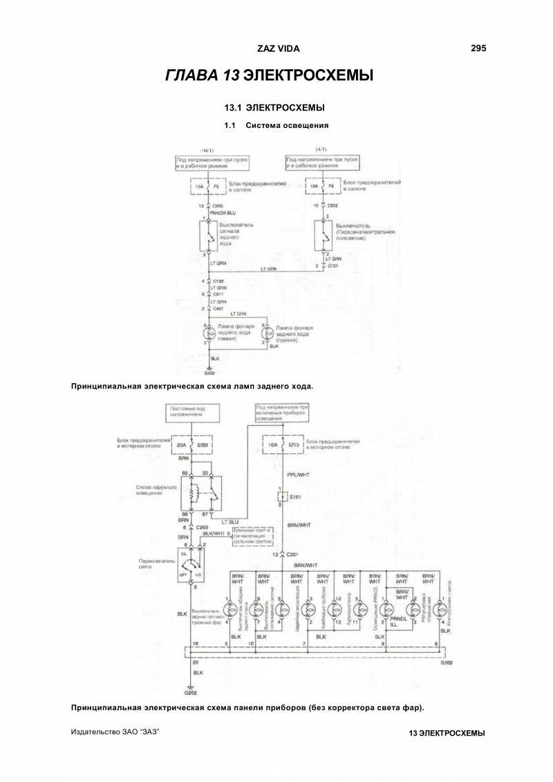 Схема пуска двигателя и аудиосистема Zaz Vida