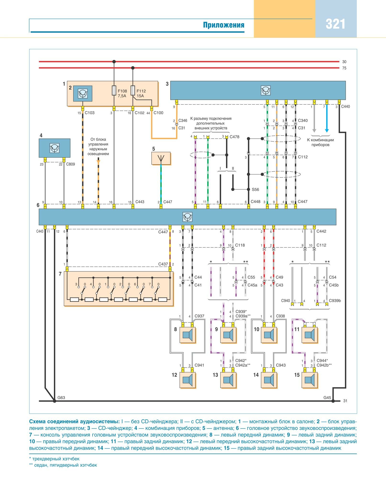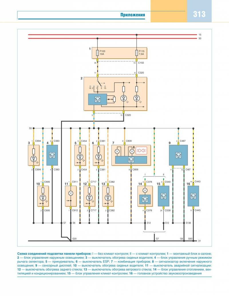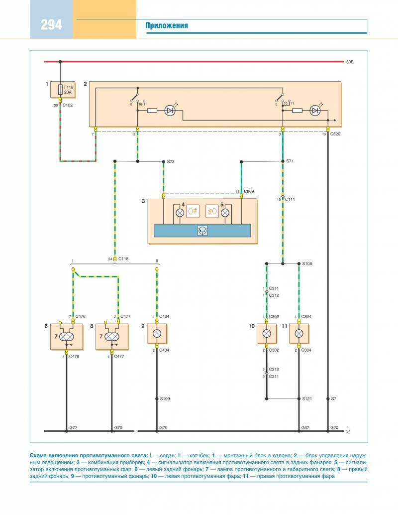 Сборник качественных электрических схем для электрооборудования автомобиля Ford Focus 2 на русском языке - вторая часть. Увеличить и рассмотреть нужную схему можно кликнув на картинку. Показаны модули электронный блок управления освещением, блок зажигания и заряда аккумулятора, комбинация приборов и другие узлы авто. Начало каталога смотрите здесь. Рассмотрим подключение противотуманных фар, ламп внутреннего освещения салона, багажника автомобиля и другие узлы.