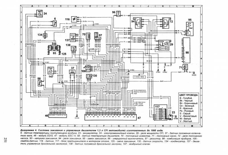 Предохранители на схемах имеют цифровое обозначение в соответствии с нумерацией реле и предохранителей.