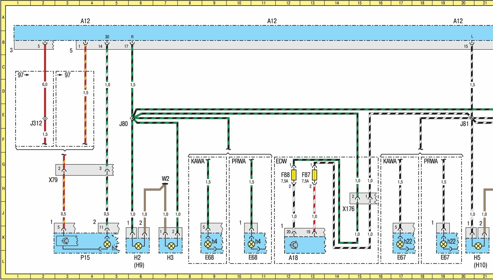 W3 Соединение с <массой> в левой фаре 22H