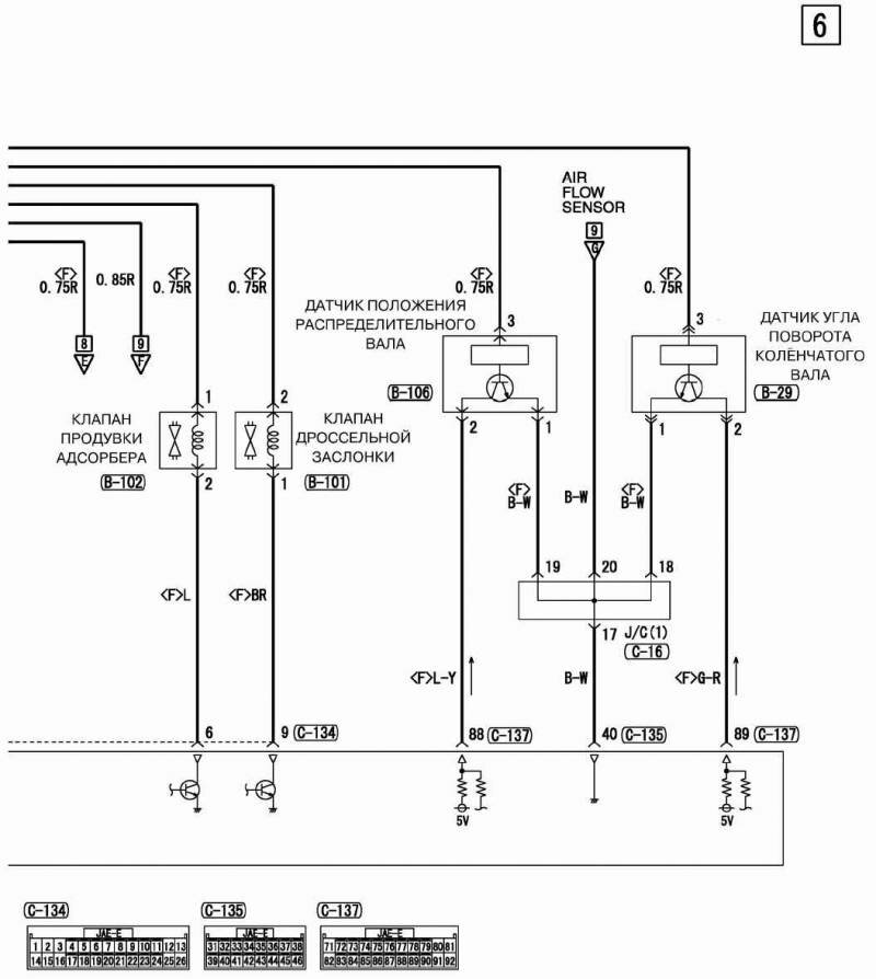 Электросхема диагностического разъёма Митсубиси Аутландер