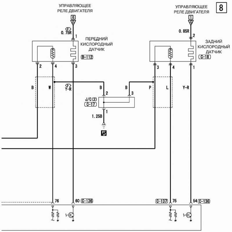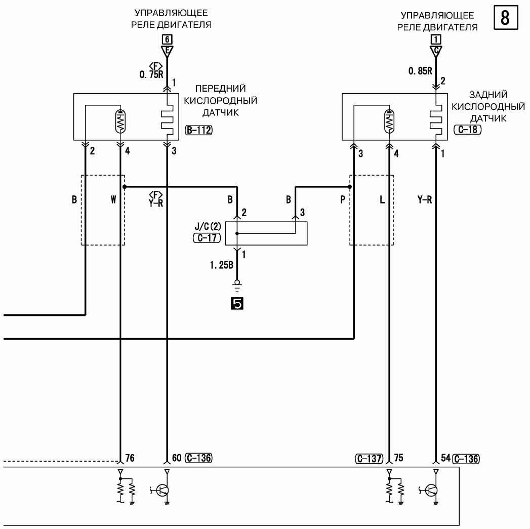 Схемы переднего и заднего кислородного датчика авто