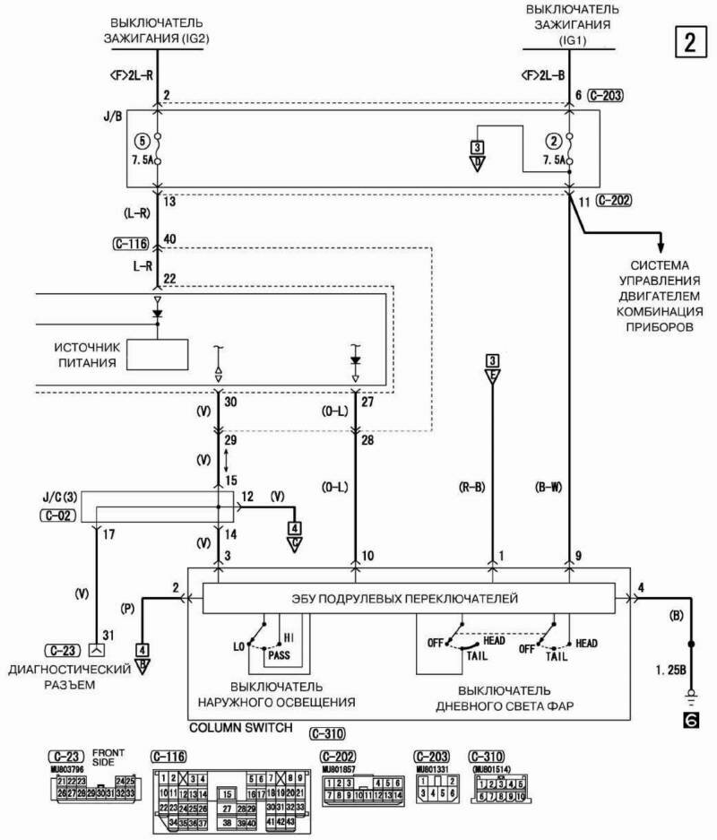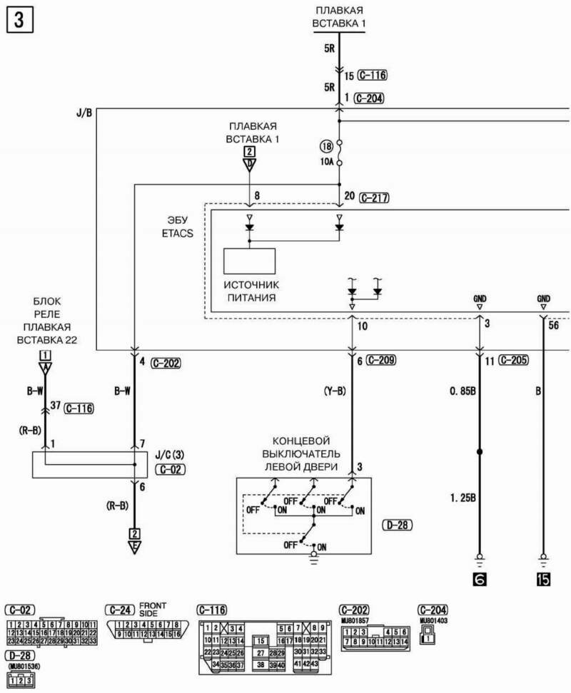 Схема концевого выключателя двери Mitsubishi Outlander