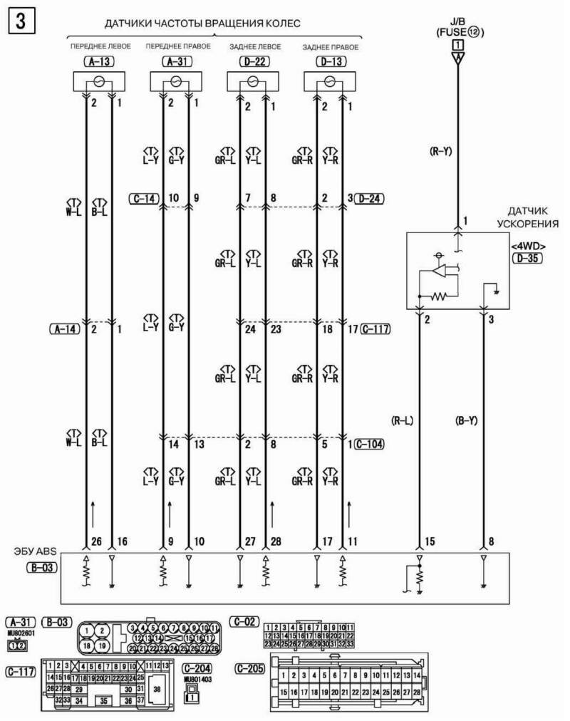 Принципиальная схема ЭБУ ABS Mitsubishi Outlander