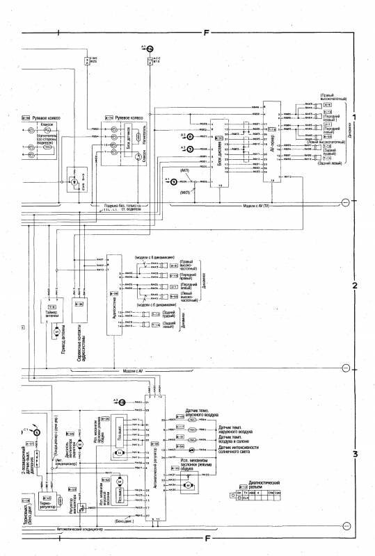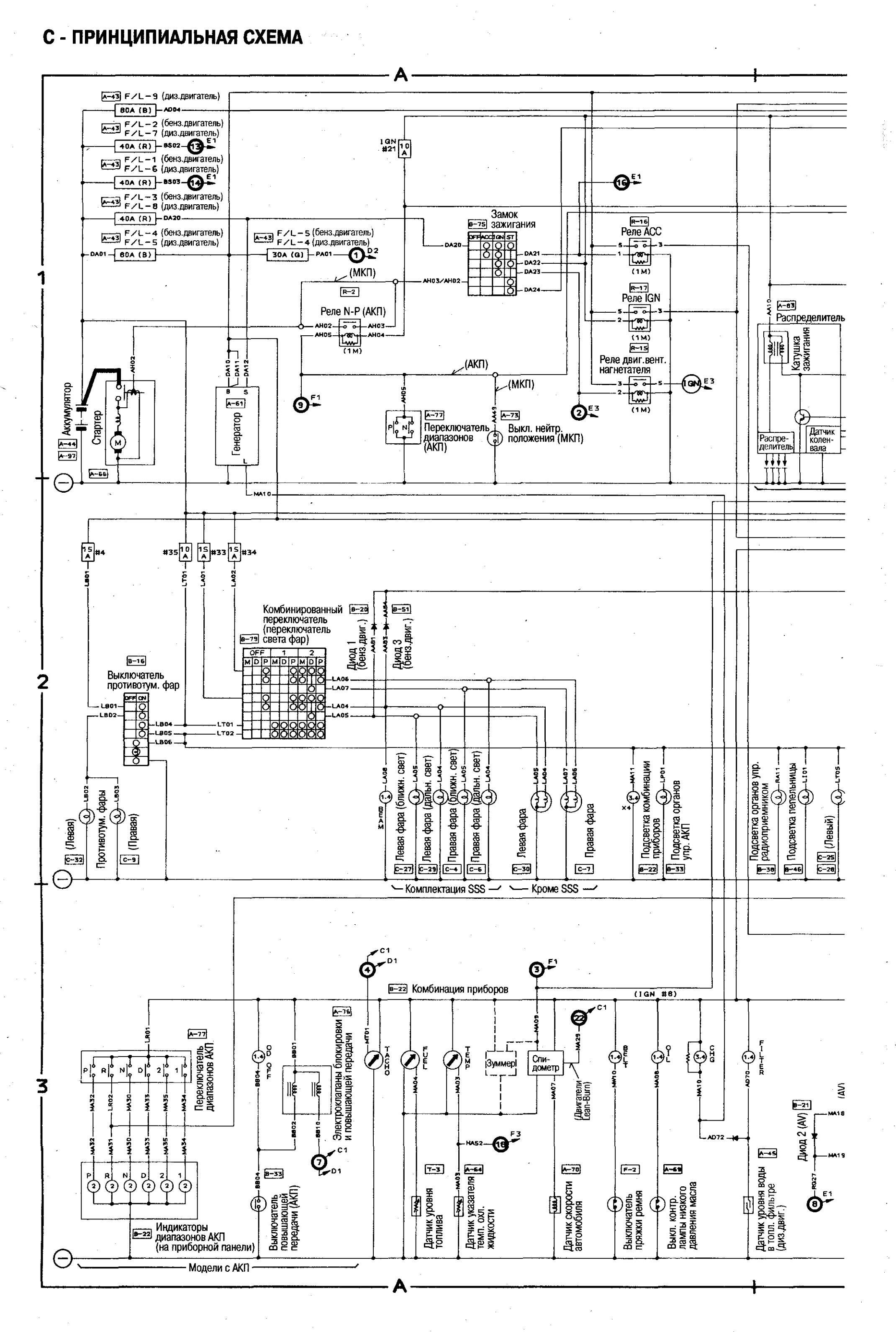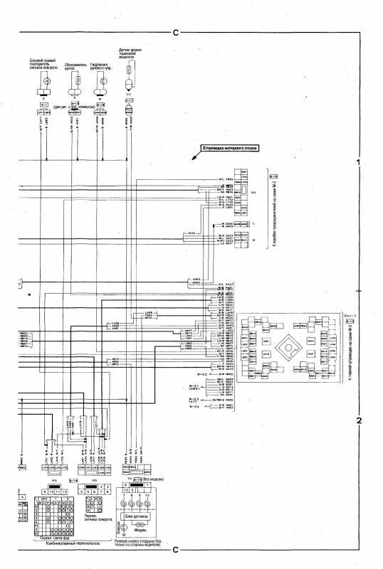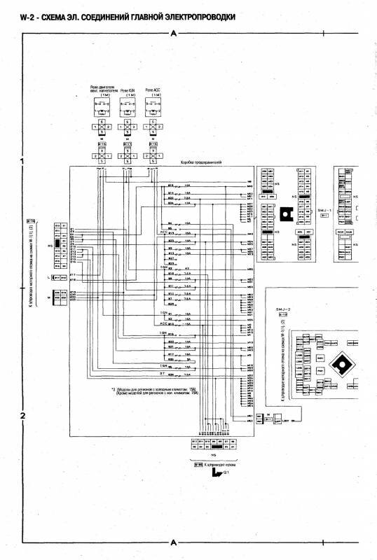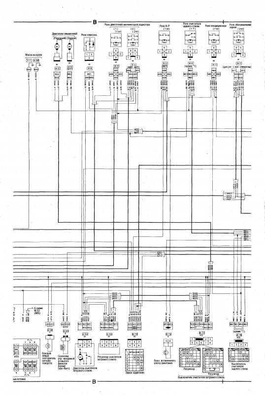 Электрические схемы автомобиля Nissan Bluebird - 1-я часть. Все схемы в высоком качестве и на русском языке. Скачать можно кликнув на кртинке и увеличив её. Остальные узлы электрооборудования Nissan Bluebird показаны тут. Для защиты электрических цепей используются предохранители с ножевыми контактами, цвет которых соответствует току защиты предохранителя. Исправность предохранителя определяют по наличию проволочного проводника, соединяющего выходные контакты предохранителя. Обозначения на схемах различных элементов, соединений и их расшифровка.