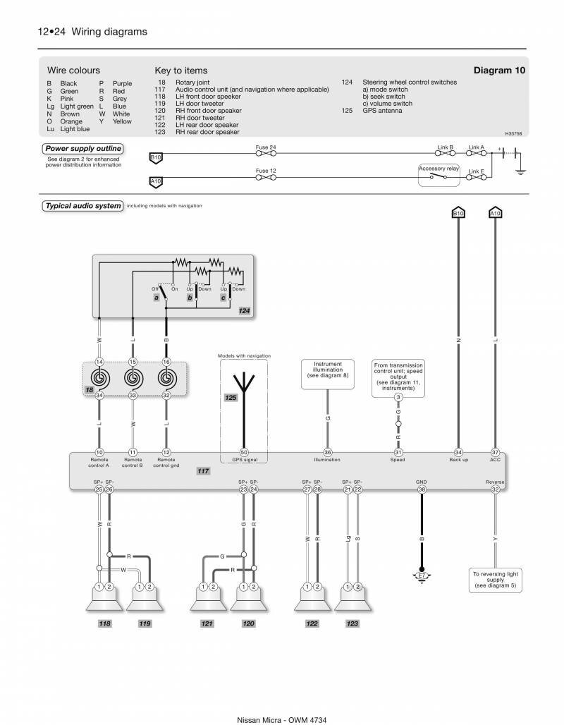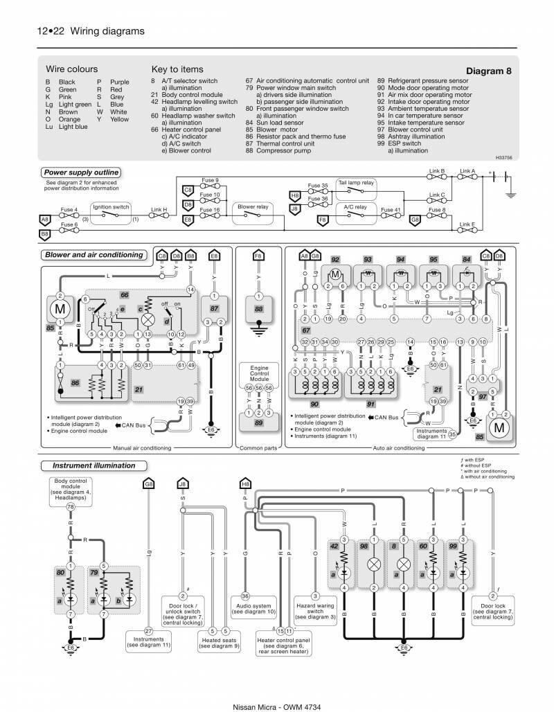 Обозначение элементов и проводов на схемах Nissan Micra