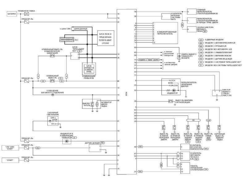 Электросхема обогрева заднего стекла и наружных зеркал заднего вида
