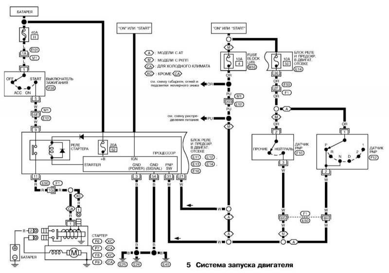 Электросхема автомобиля ниссан микра. Для увеличения схемы кликните на ней. В сборнике представлены схемы распределения питания, системы управления двигателем, схема соединения монтажного блока и другие узлы ниссан микра.