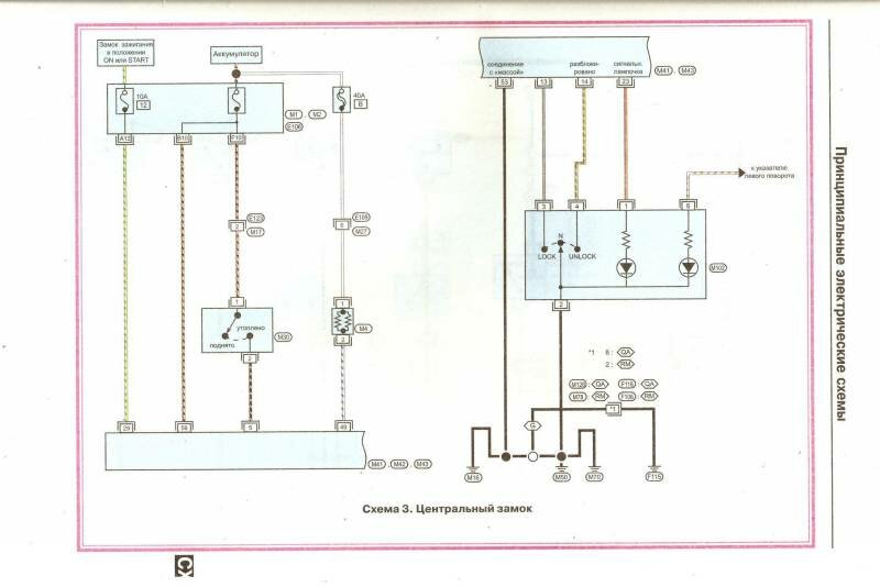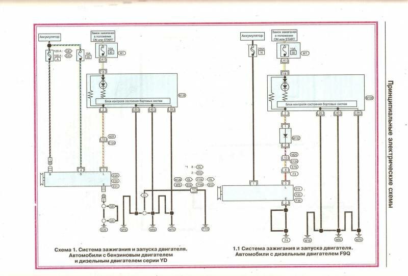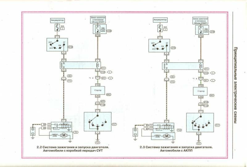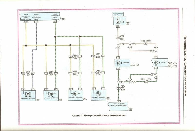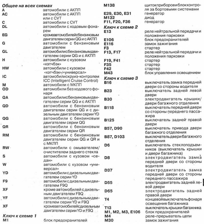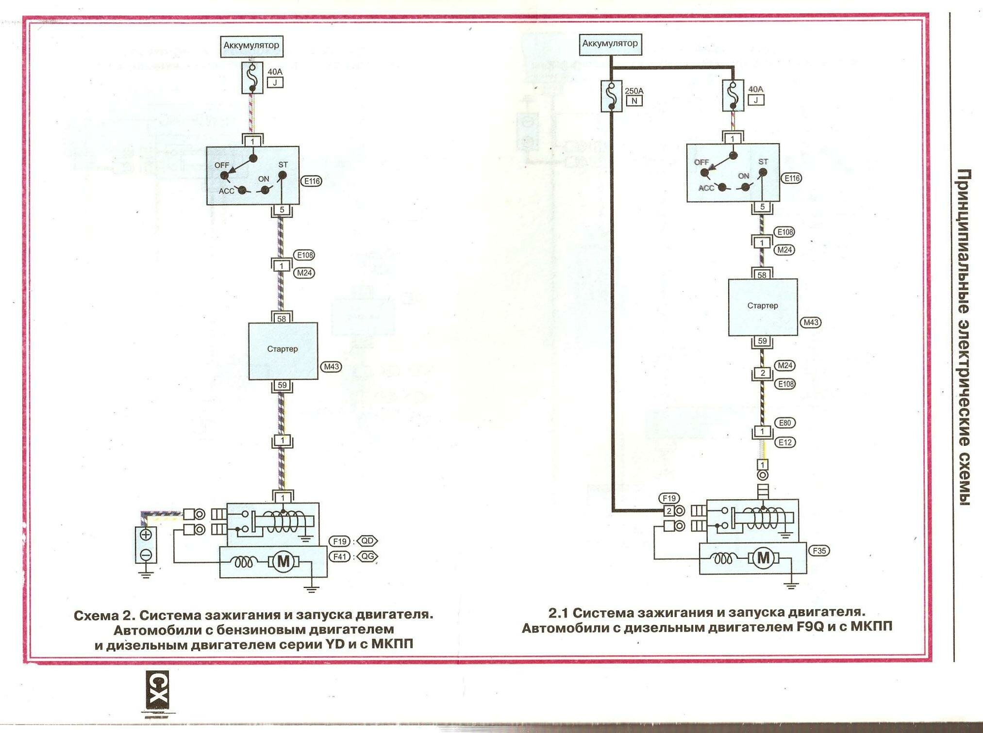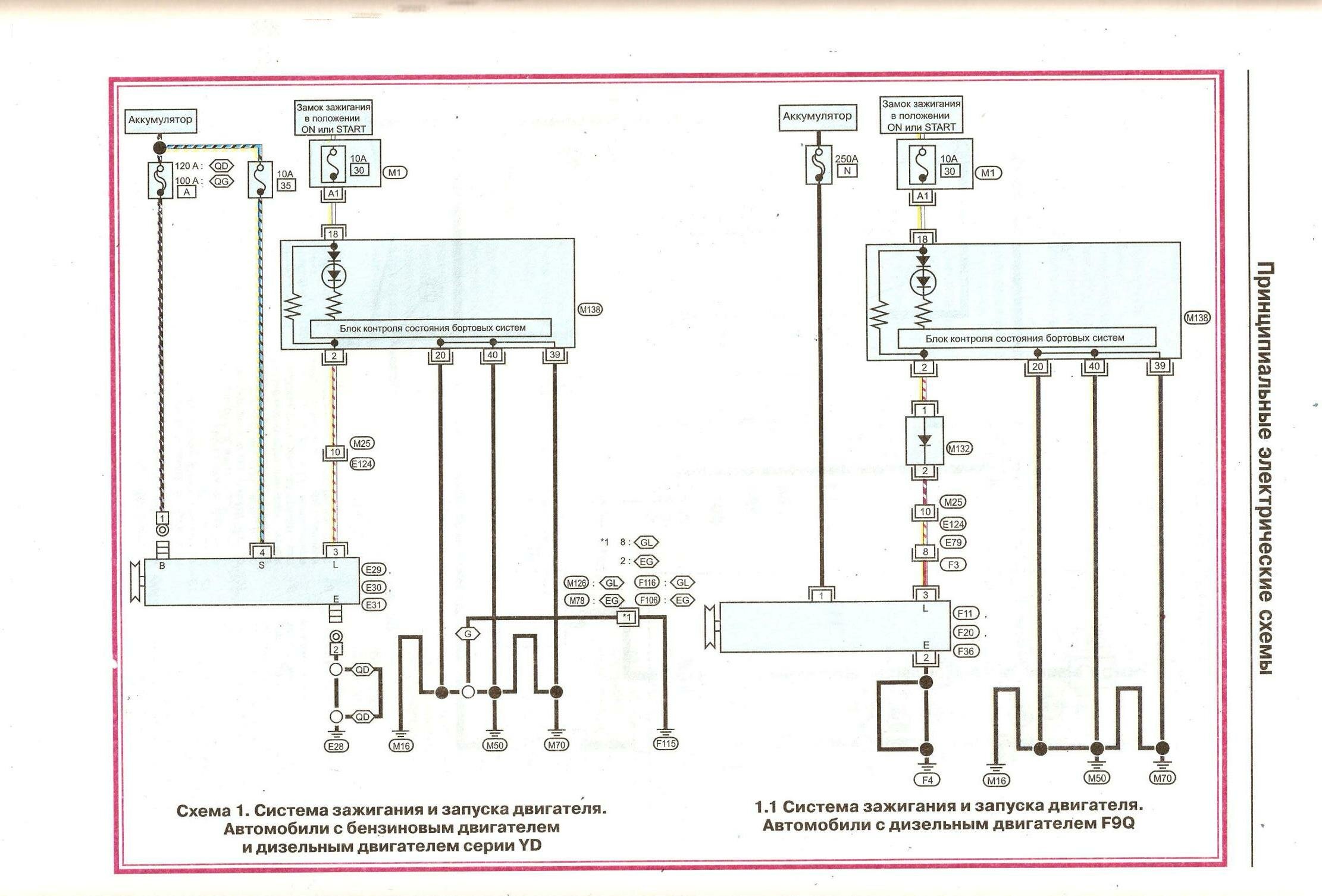 Электросхемы легкового авто Ниссан Примера - 1-я часть. Все принципиальные схемы в цвете, высоком качестве и на русском языке. Рассмотреть нужную схему можно кликнув на кртинке и увеличив её. Продолжение электрооборудования Ниссан Примера тут. Для защиты электрических цепей используются предохранители с ножевыми контактами, цвет которых соответствует току защиты предохранителя. При ремонте, работоспособность предохранителей определяют по наличию проволочного проводника, соединяющего выходные контакты предохранителя или с помощью омметра. Для нормального питания потребителей электрическая цепь должна быть замкнута, так как в противном случае в ней будет присутствовать электрический ток, например, если к электродвигателю охлаждения подается положительное напряжение, он не будет работать до тех пор, пока его электрическая цепь не будет соединена с массой.