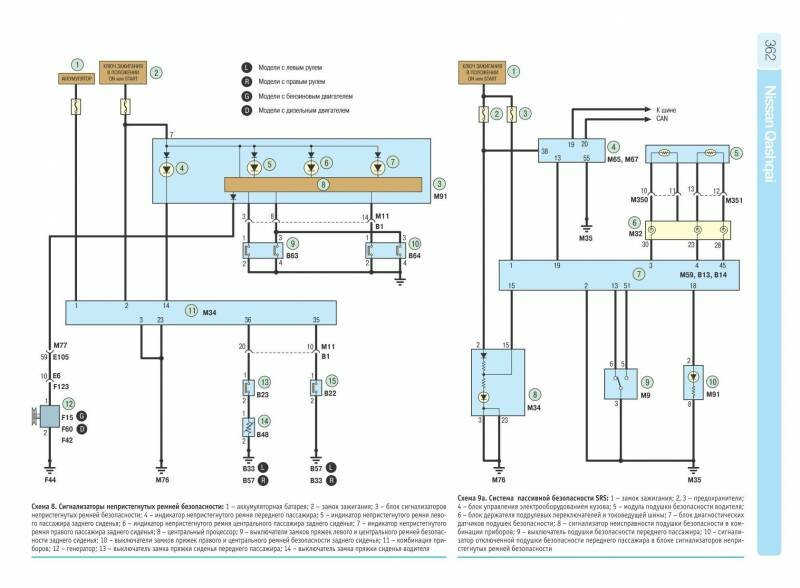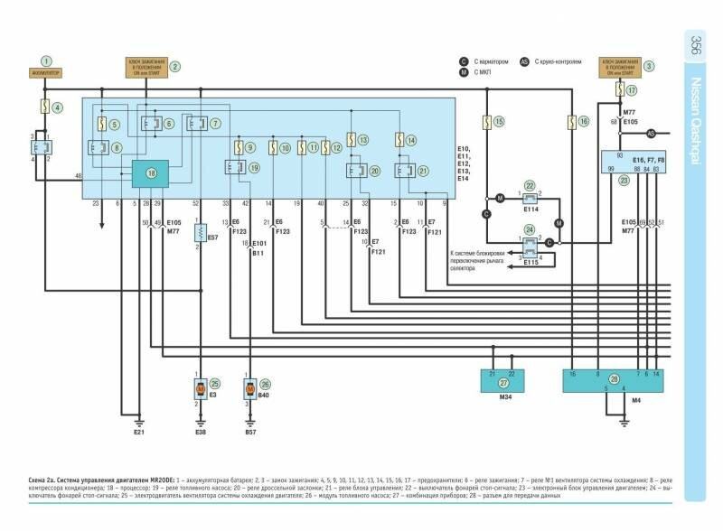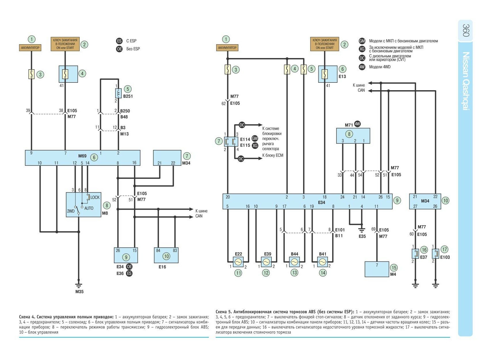 Цветные схемы автомобиля Nissan Qashqai с 2007 и Nissan Qashqai +2 с 2008 года полностью на русском языке, вы можете бесплатно посмотреть в данном материале. На электросхемах имеются модули антиблокировочной системы тормозов, системы управления двигателем, подключение всех фар и т.д. Информация взята из открытых справочников и бесплатно предоставляется для работников СТО, а также автоэлектриков-самодельщиков. Внизу страницы имеются и фотографии блоков реле и предохранителей Ниссан Кашкай, с указанием функций каждого предохранителя. Это первая часть. Остальные электросхемы для этого автомобиля смотрите тут.