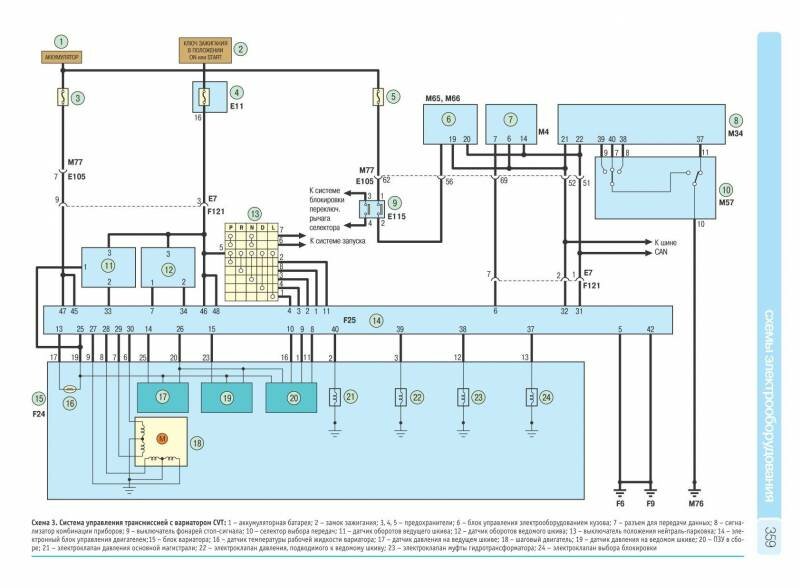 Схема принципиальная стеклоподъёмников и привода зеркал