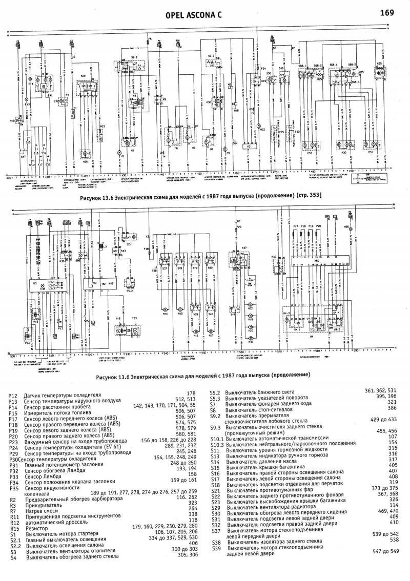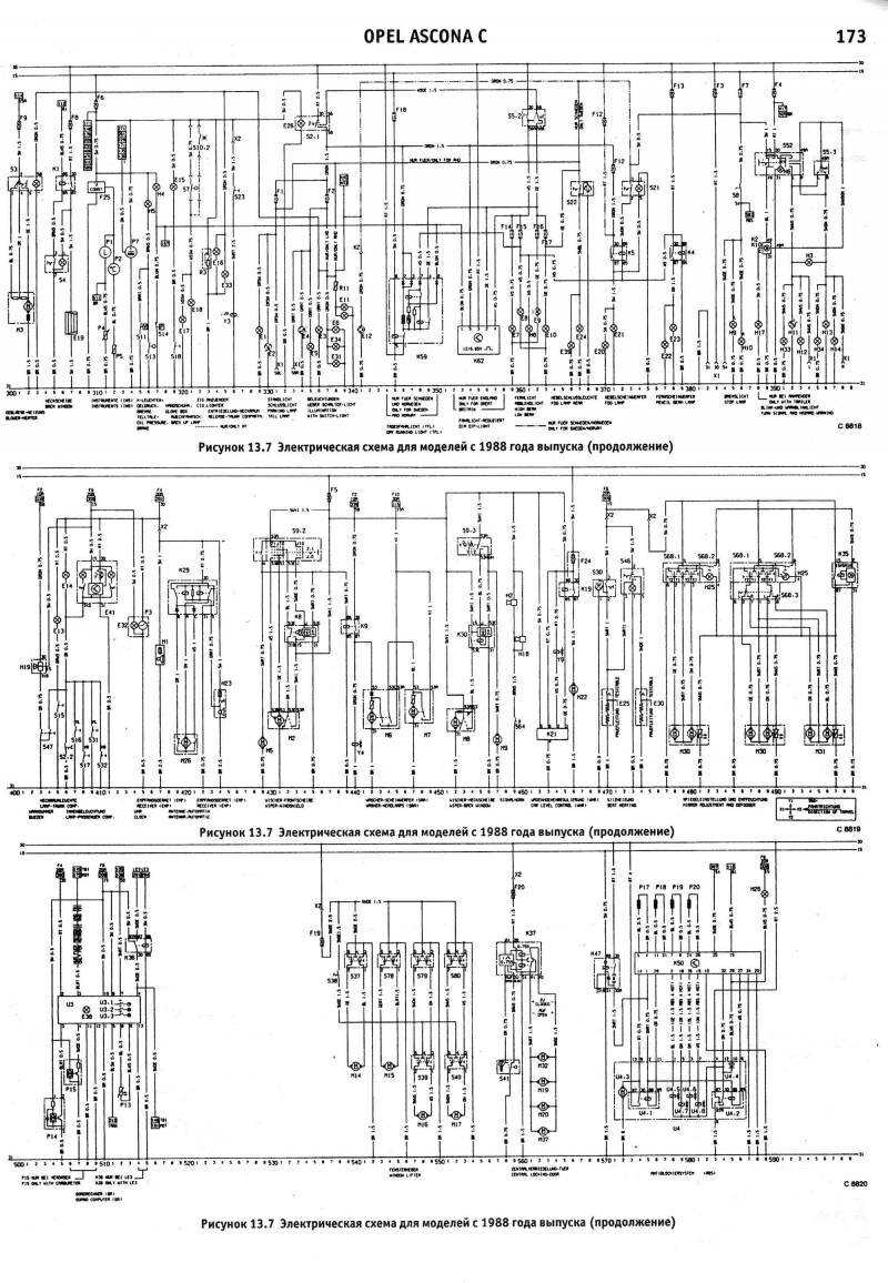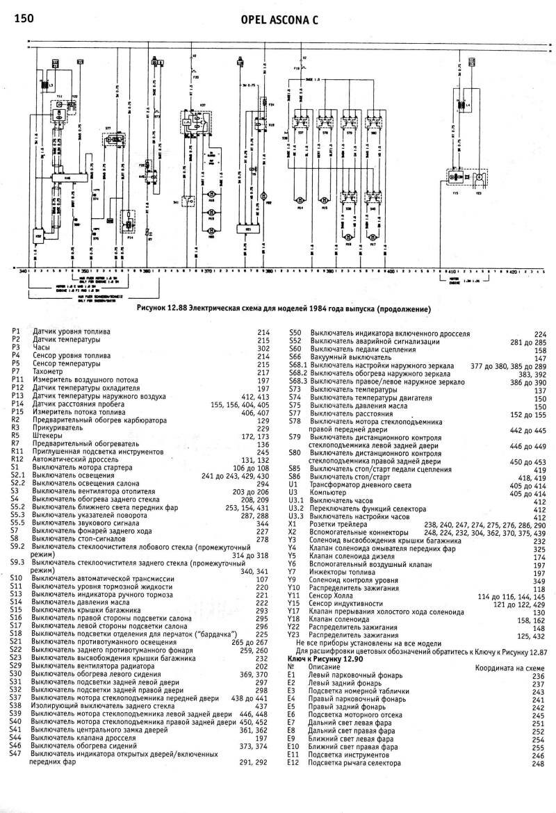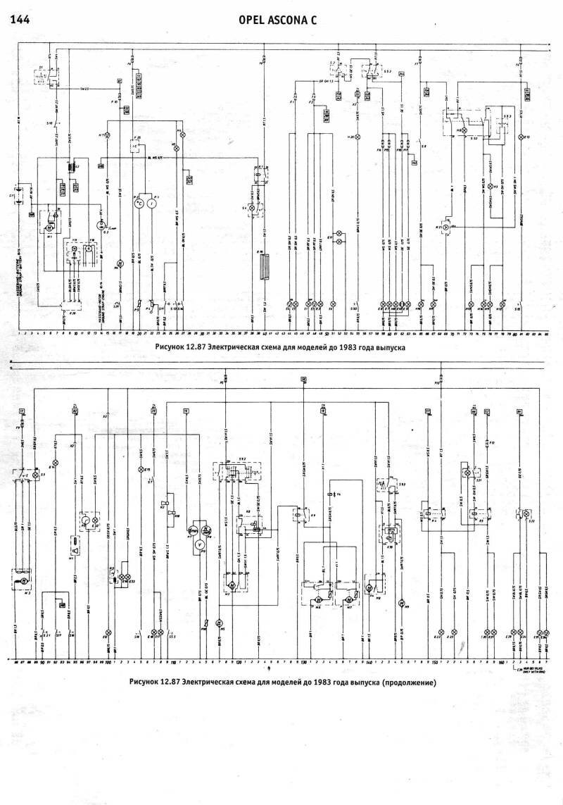 Электросхемы автомобиля Опель Аскона модельного ряда 1983-1988 годов, а именно: Opel Ascona 1984, Opel Ascona 1985, Opel Ascona 1986, Opel Ascona 1987, Opel Ascona 1988. На отдельных картинках приводятся расшифровки и обозначения элементов на схемах. Наименование элементов приведены в соответствии с DIN 40719, обозначение линий в соответствии с DIN 47002. Некоторое наложение участков схем Opel Ascona C облегчает чтение. Предназначено для специализированных автомастерских.