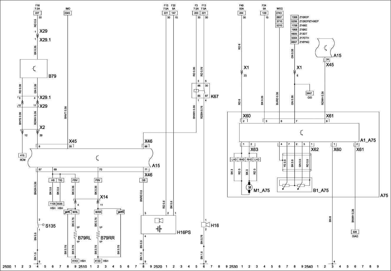 S135 – выключатель – капот двигателя, система противоугонной сигнализации.