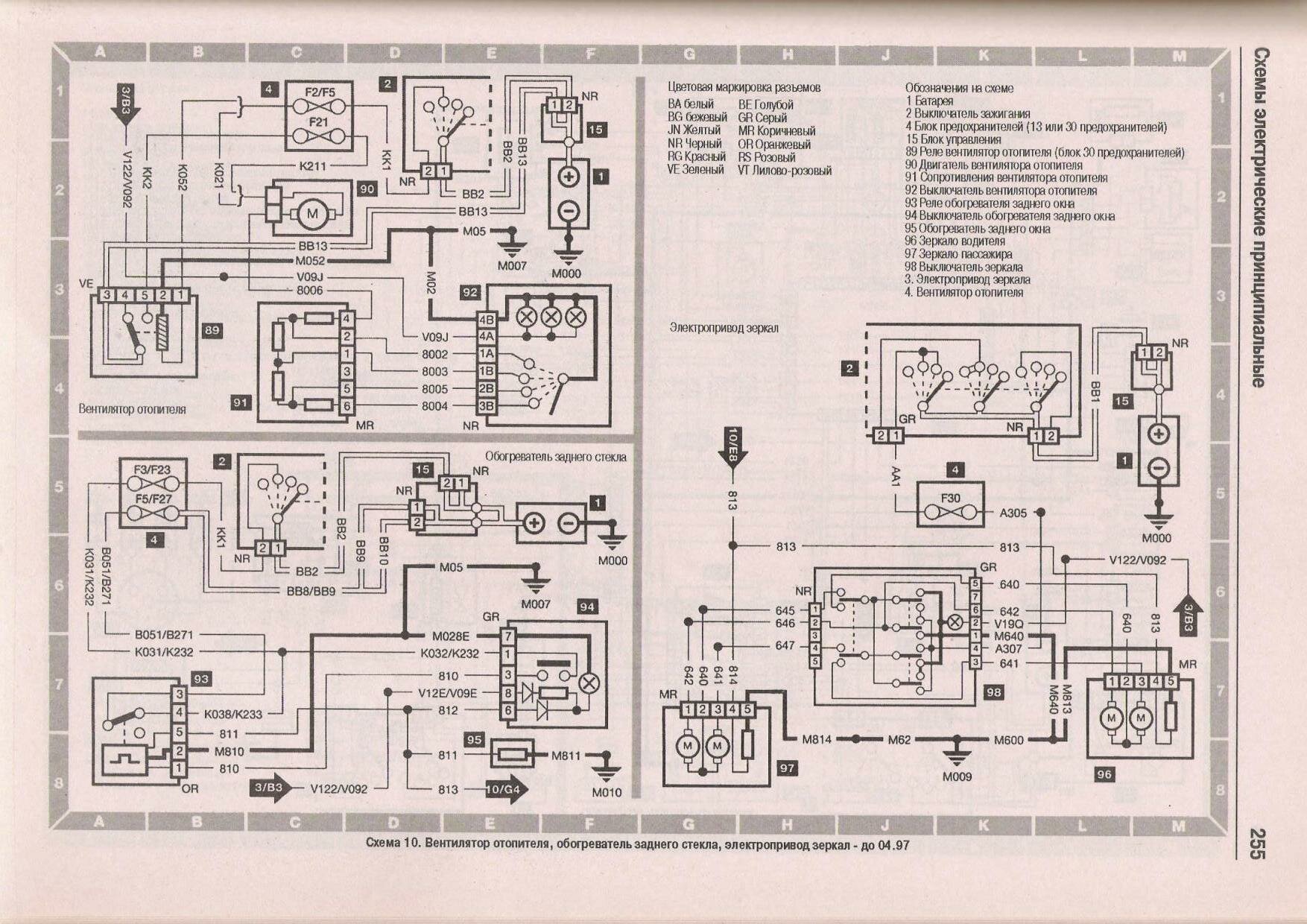 Схема вентилятора отопителя, привода зеркал и обогревателя стекла