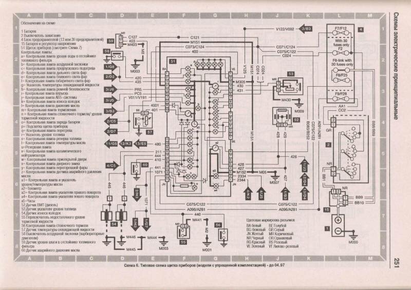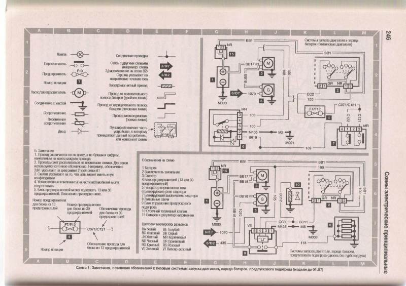 Системы запуска двигателя и заряда батареи Peugeot 306