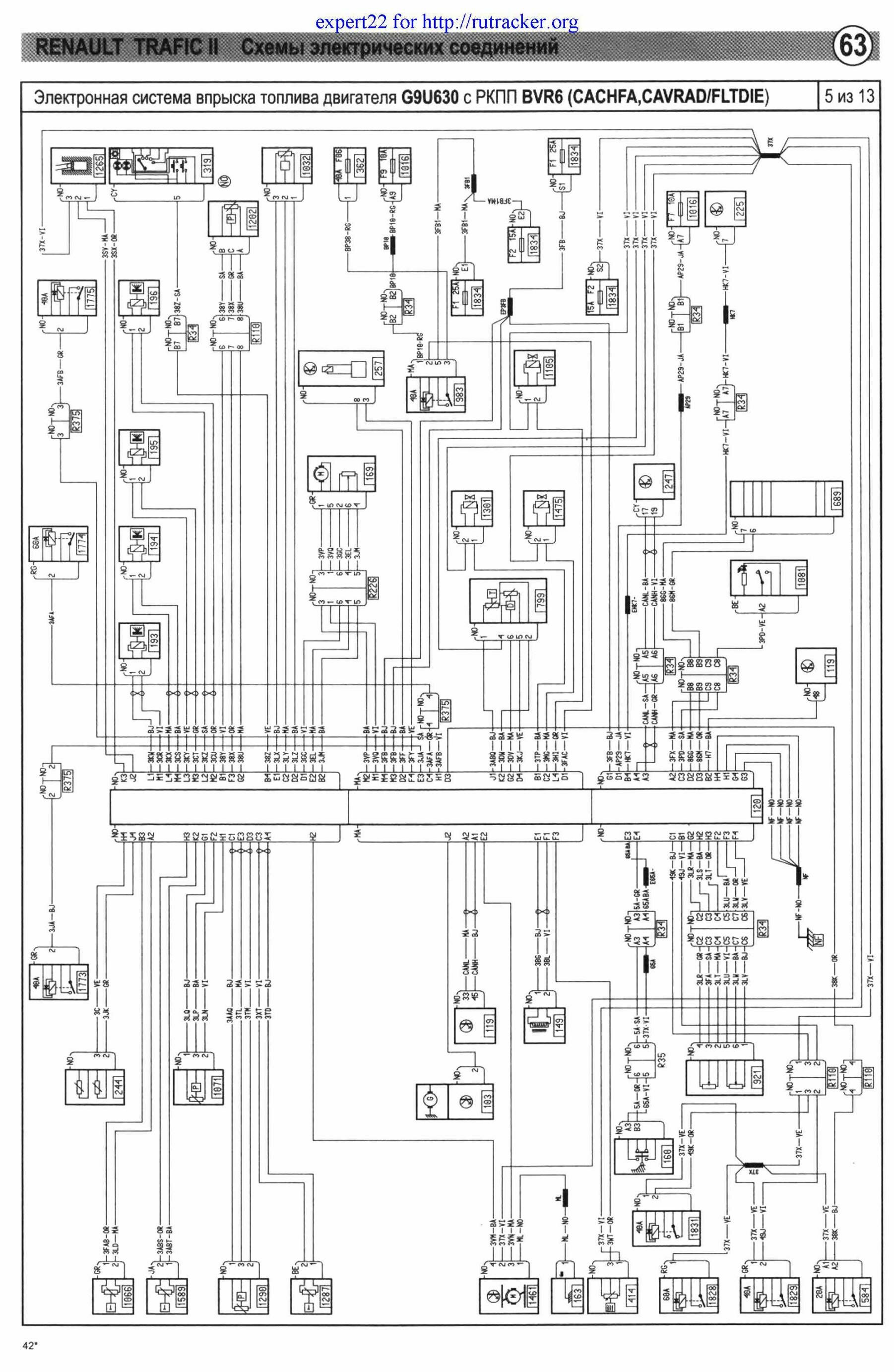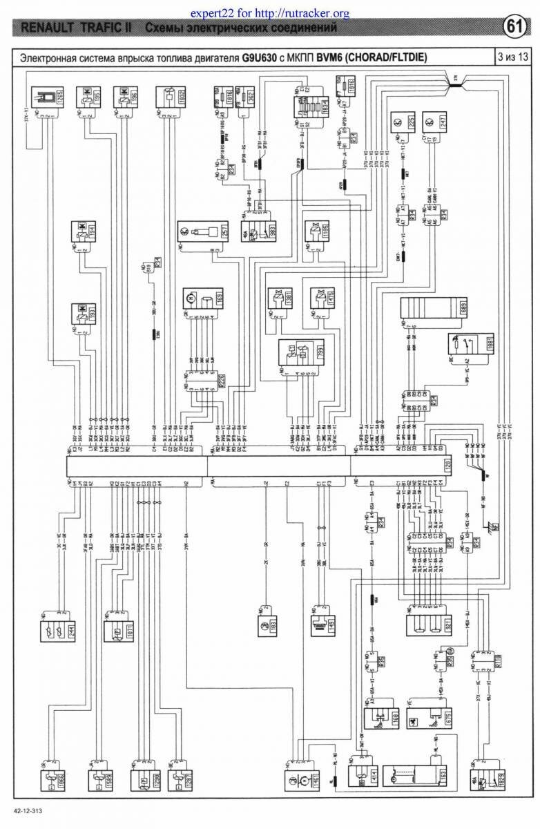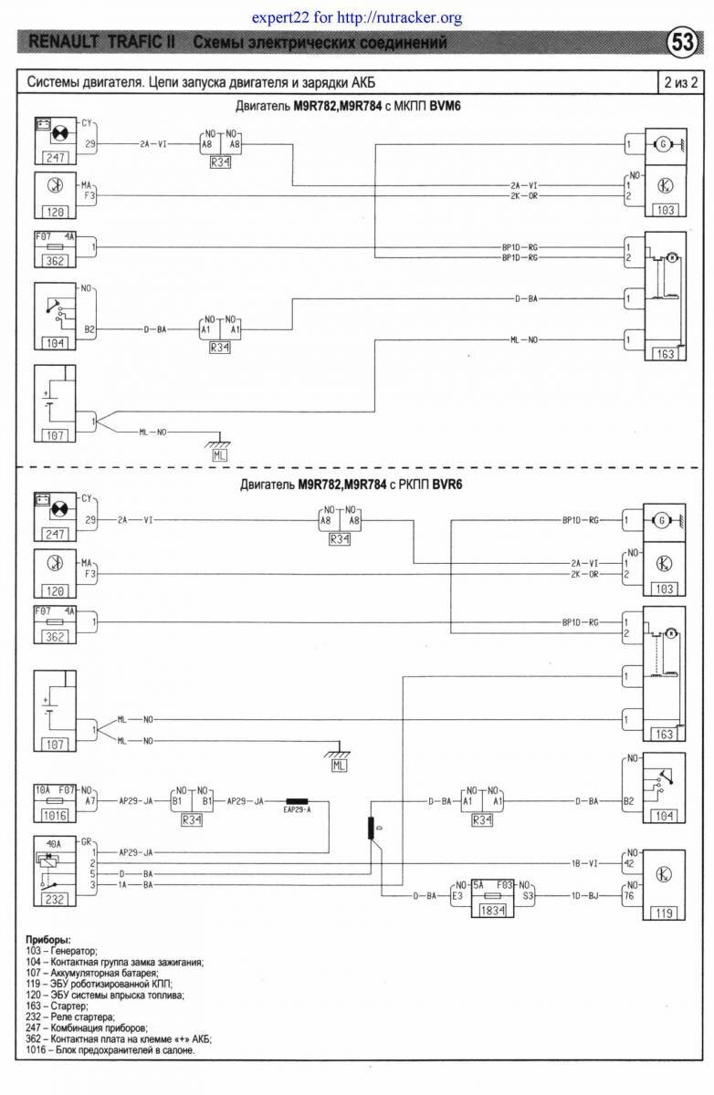 Бесплатные схемы электрооборудования двигателя автомобиля Renault Trafic. Все схемы на русском языке и в хорошем качестве. Чтоб развернуть картинку на весь экран - кликните на неё. Приведены модули запуска двигателя, впрыска топлива, охлаждения, электроснабжения двигателя. Схемы защищены от копирования и просматривать их можно только на сайте. Продолжение сборника, с описание остальных схем Renault Trafic, смотрите тут.