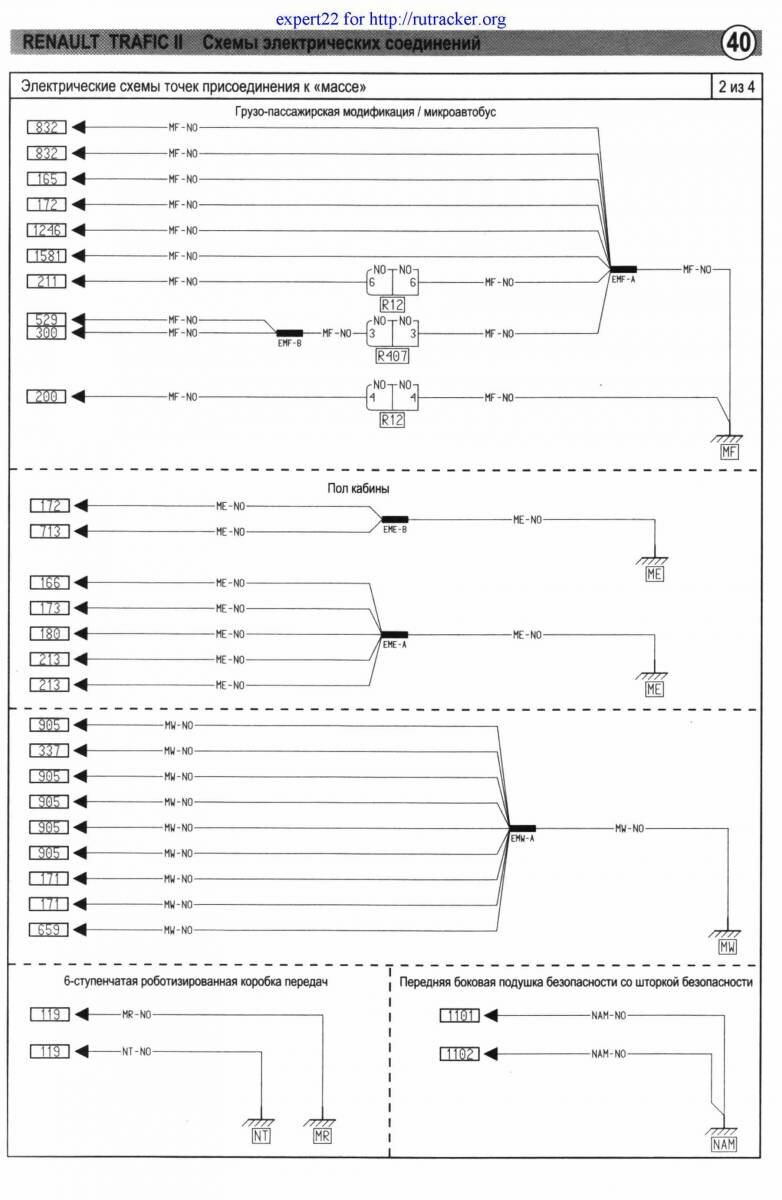 Электрические схемы точек подсоединения к массе