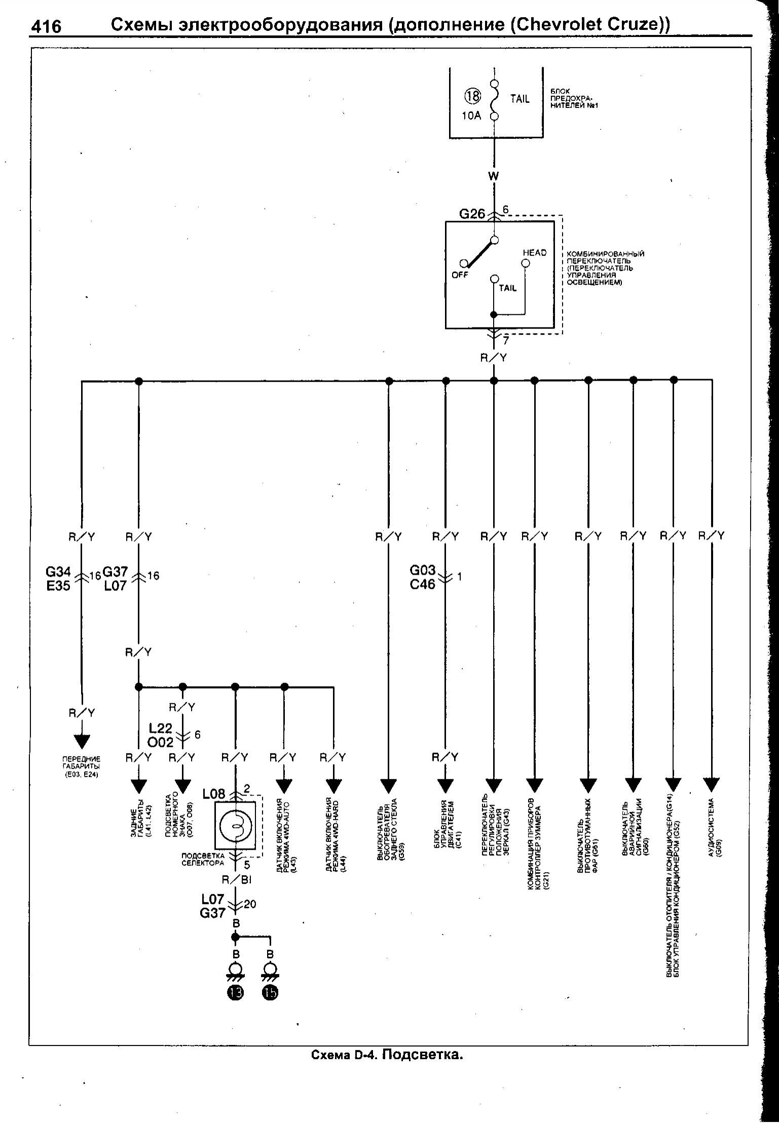 Электрическая схема блока комбинации приборов Шевроле Круз