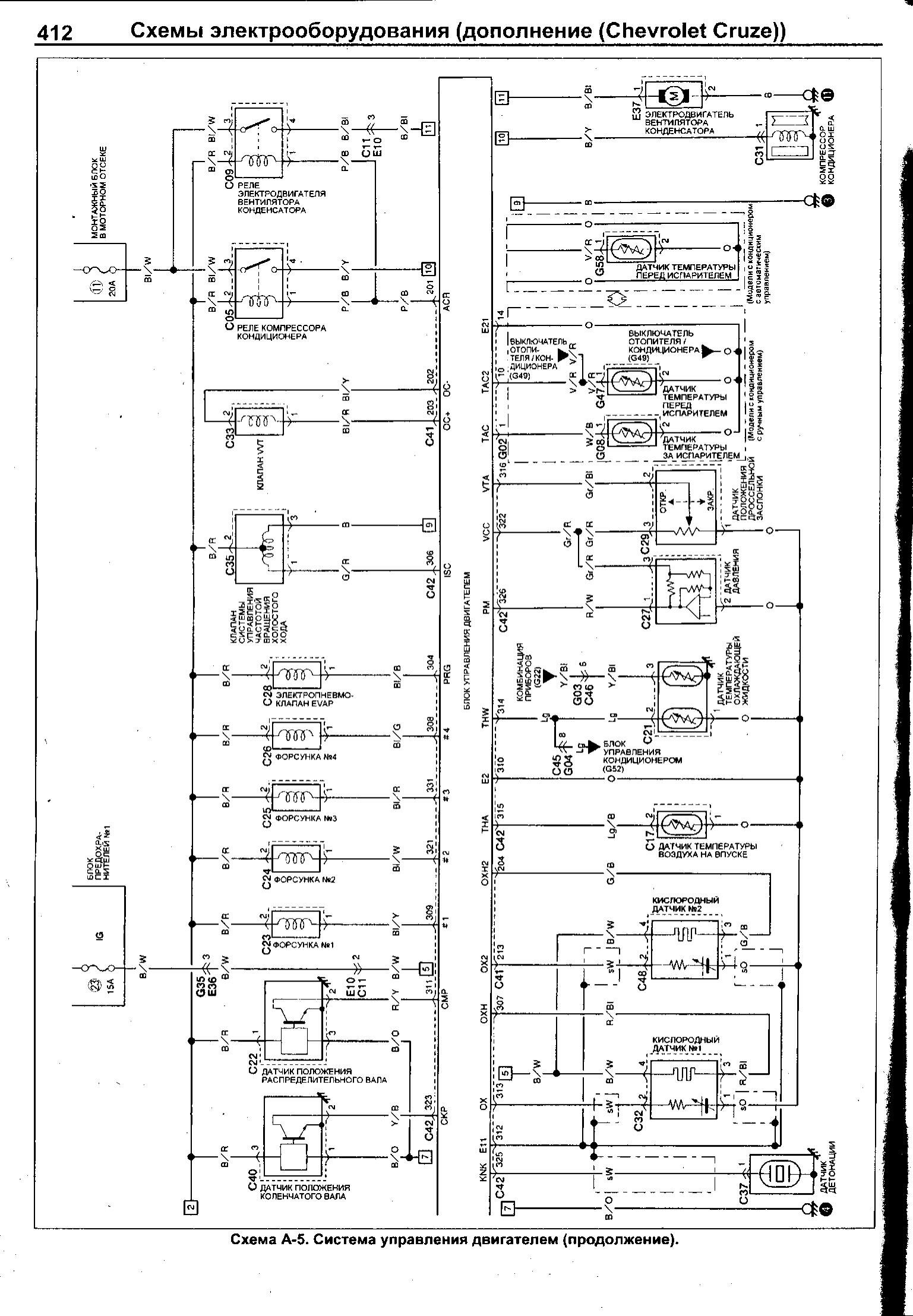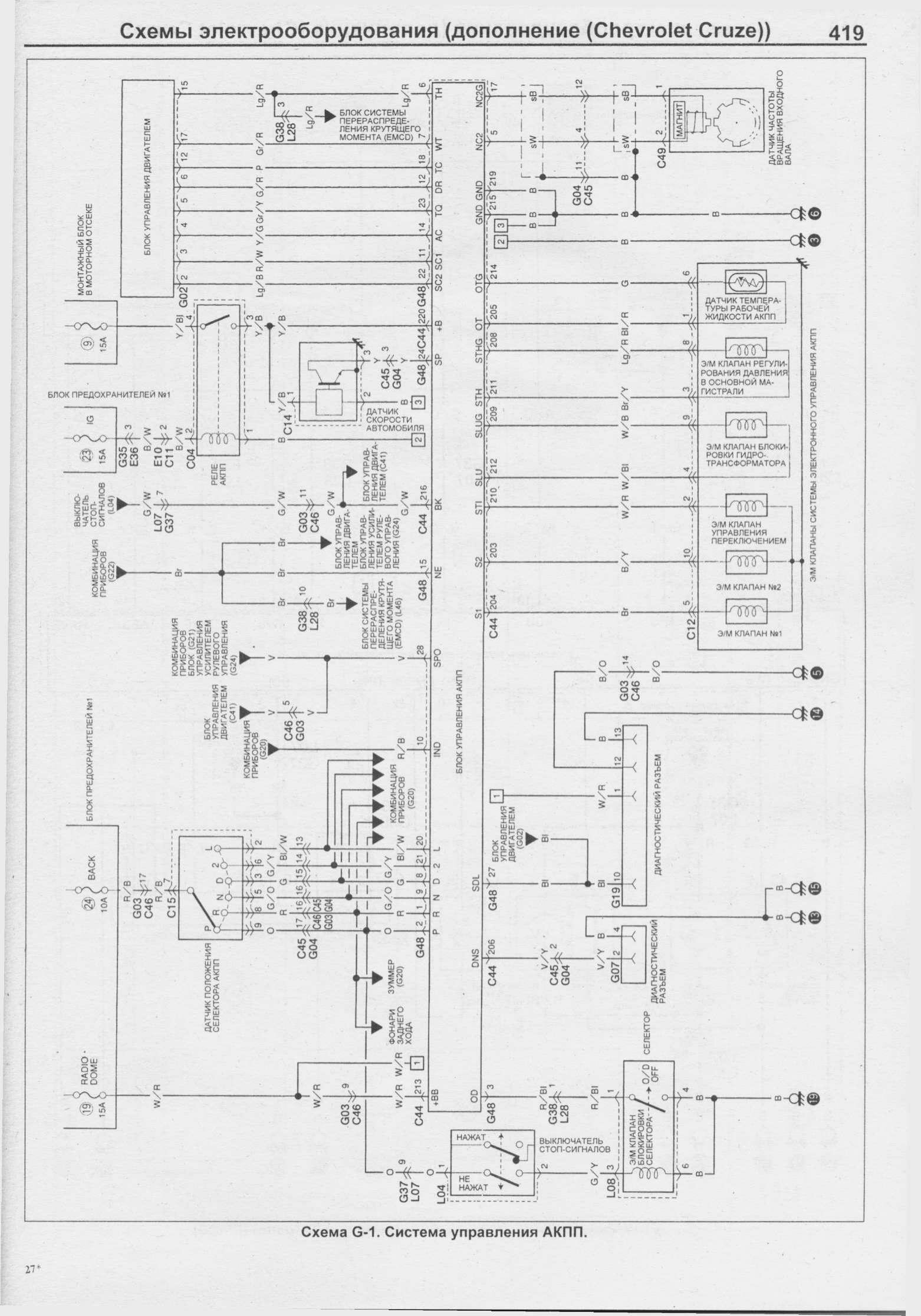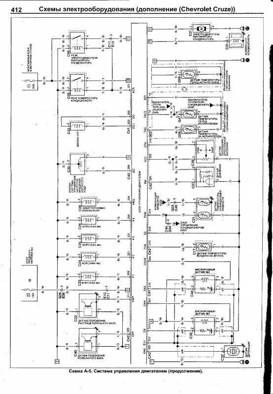 Электросхема и соединения электрической проводки и узлов приборов автомобиля шевроле - круз. Соединение приборов, соединения звукового сигнала, стеклоочиститель и омыватель ветрового стекла, соединения стеклоподъемников передних дверей, соединения комбинации приборов, антиблокировочная система тормозов, система управления двигателем Chevrolet Cruze и другие.