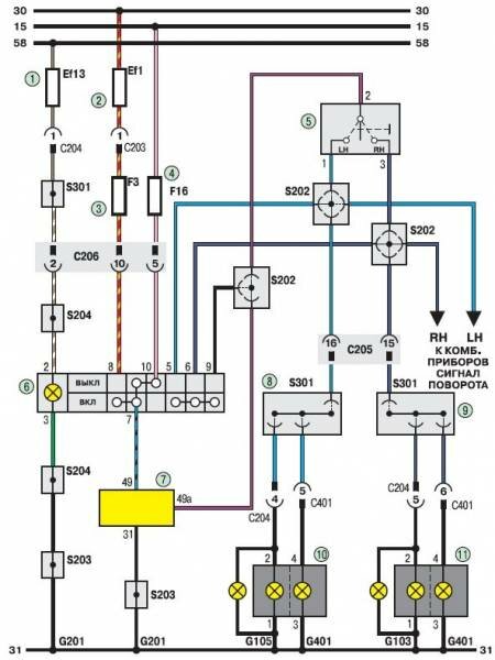 Электросхема электрической проводки и узлов приборов освещения автомобиля шевроле - ланос. Соединение приборов освещения: