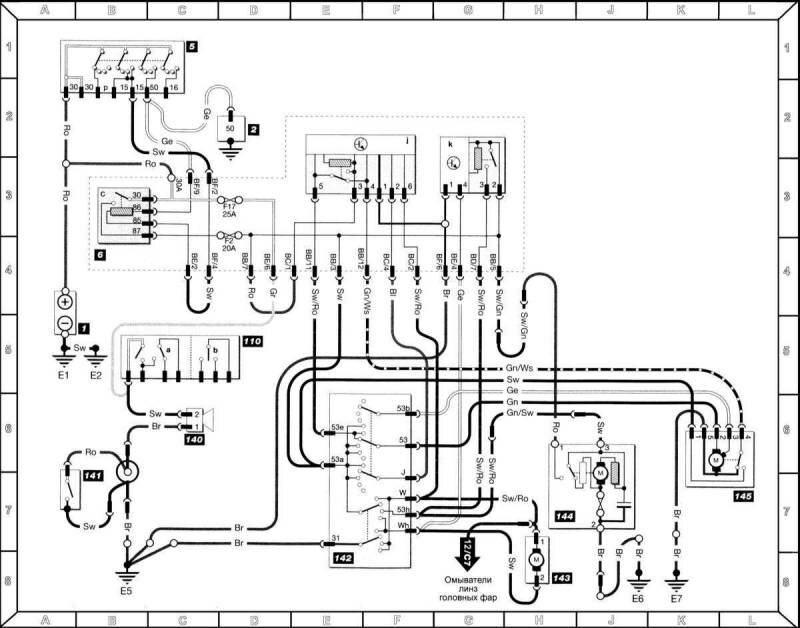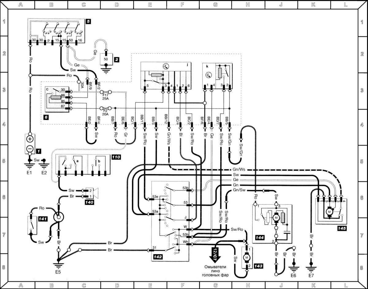 Автомагнитола, единый замок и очистители и омыватели линз головных фар - схема