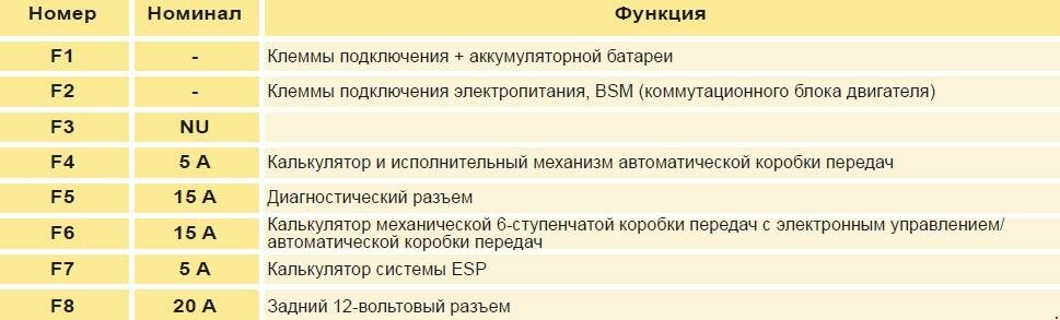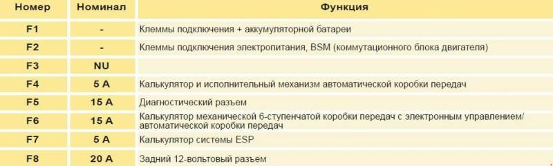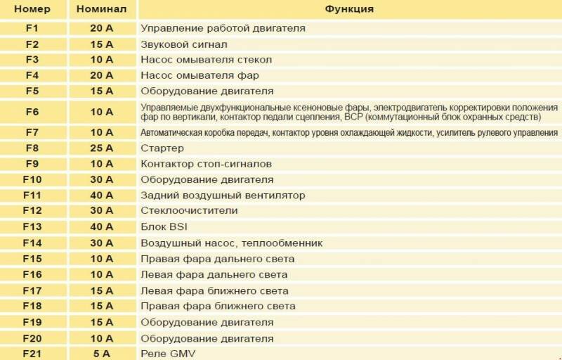 Предохранители в моторном отсеке Ситроен С4