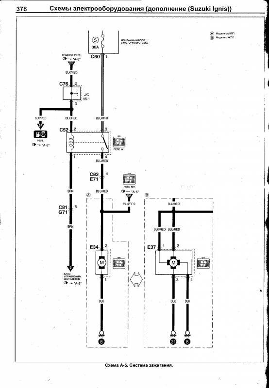 Качественные электросхемы автомобиля Suzuki Ignis на русском языке. Представленна первая часть, содержащая такие узлы: зажигания, управления двигателем, иммобилайзер, указатели поворотов, омыватели стекла и другие. В конце статьи указан пример обозначения элементов на схемах и их расшифровка. Увеличить схему можно кликнув по ней и развернув на весь экран. Вторую часть сборника электросхем Сузуки Игнис смотрите на следующей странице.
