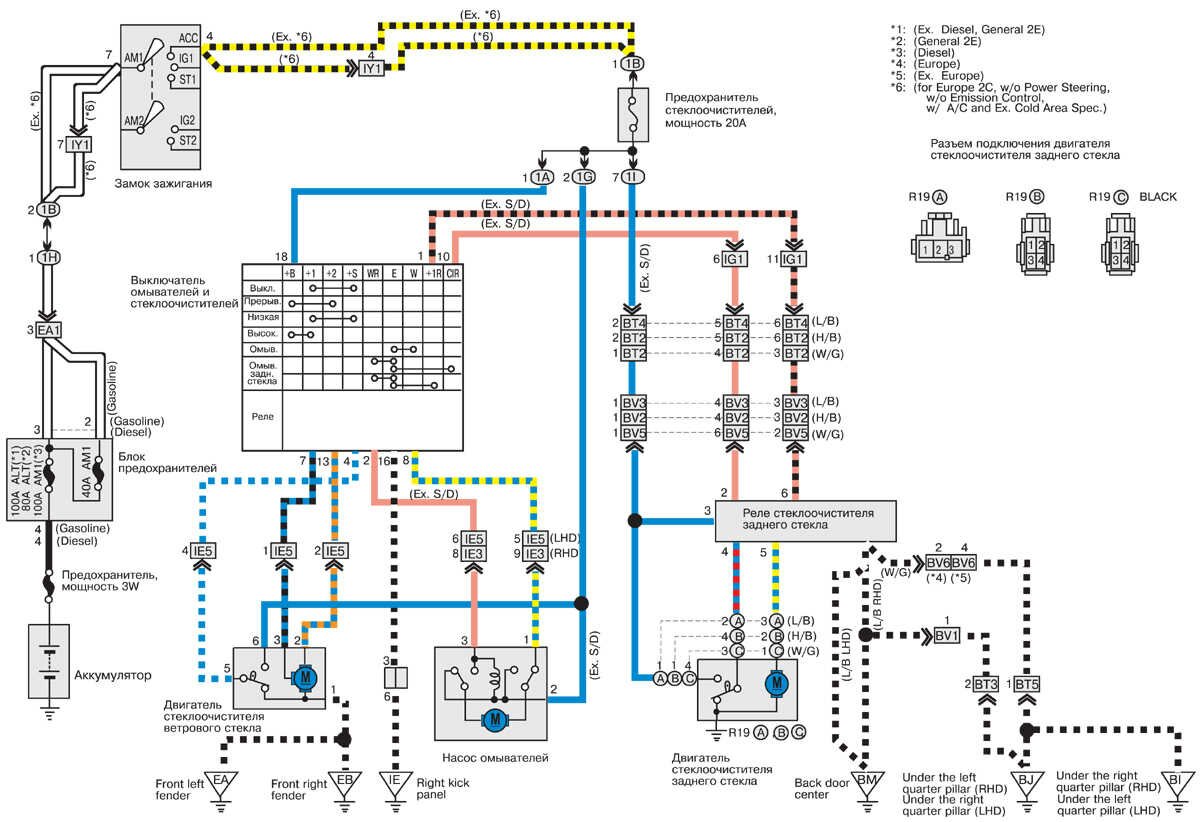 Омыватели и стеклоочистители - принципиальная схема