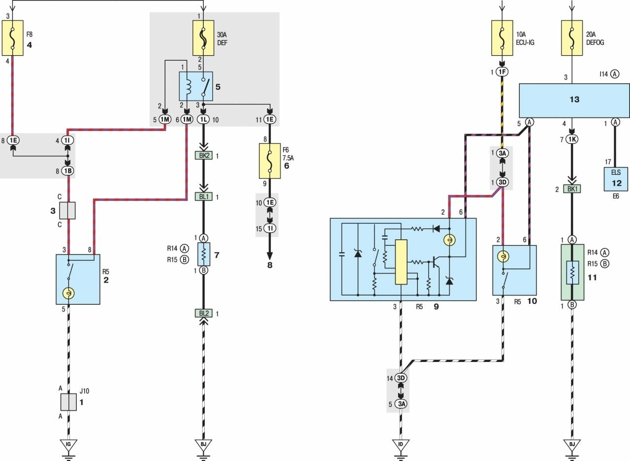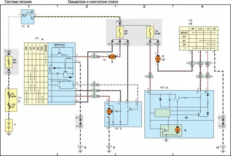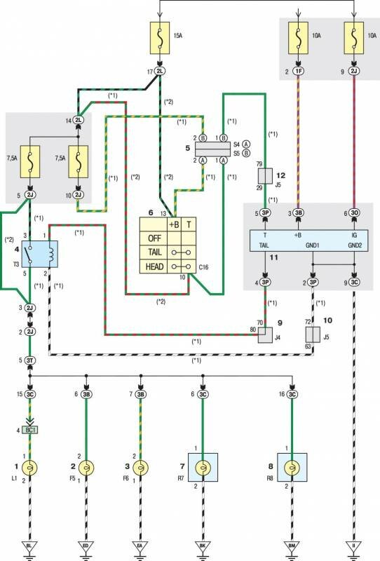 Электросхема габаритного освещения и подсветки Toyota Rav 4