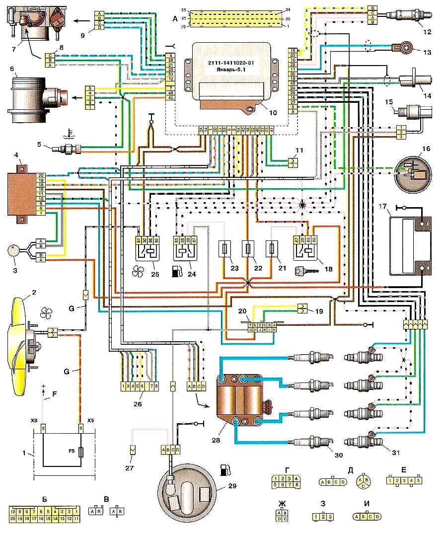 Схема управления двигателем ВАЗ-2111 (1,5 8 кл) - скачать