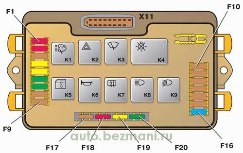 Расположение реле и предохранителей старого образца