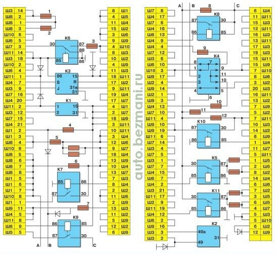 - К11 - реле включения ближнего света фар.
